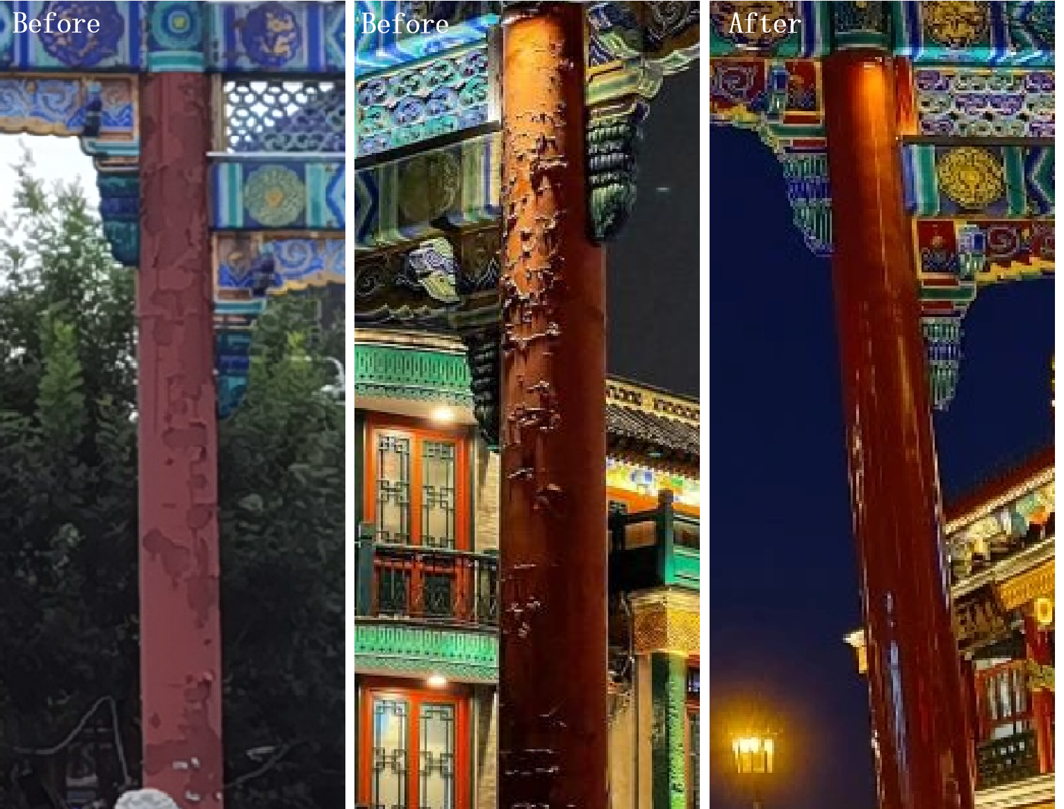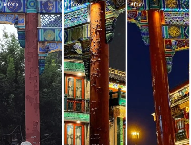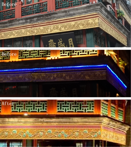 Provide comprehensive renovation of lighting, advertising, roof cleaning, and infrastructure improvement. Through five aspects of shape, material, color, light and shadow, and texture, further highlight the characteristics of traditional, Republic of China, and Qing Dynasty architecture.