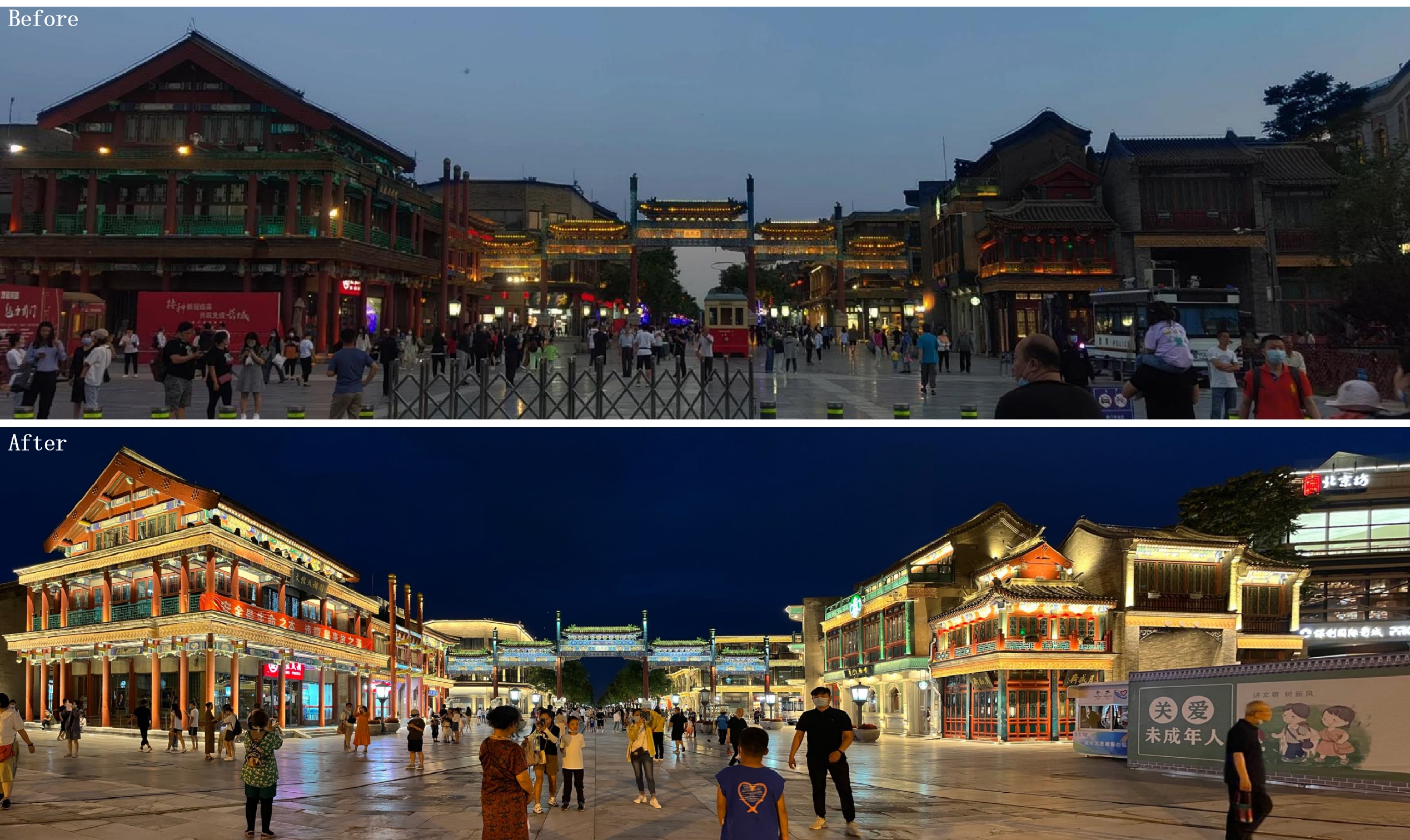 Entry DescriptionQianmen Street is one of the important sections of Beijing's central axis, approximately 800 meters long from north to south, and is one of the commercial streets with a century old history in the world. This project aims to create a world-class cultural heritage and is a night tour project that stimulates the vitality of the city at night and inherits Beijing culture.