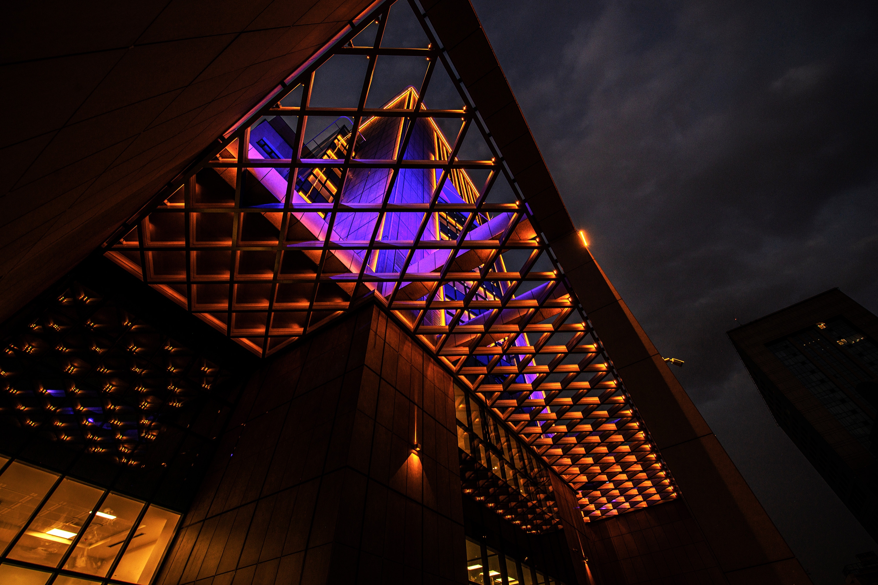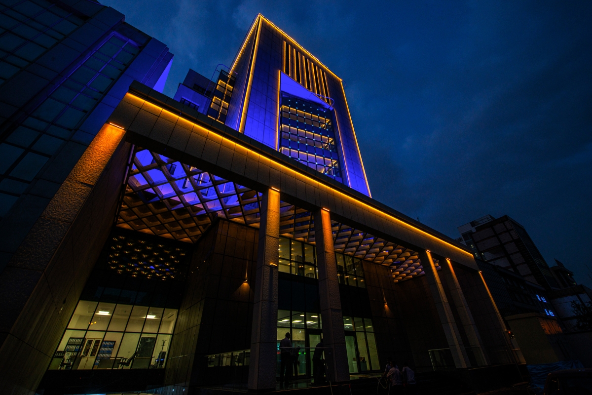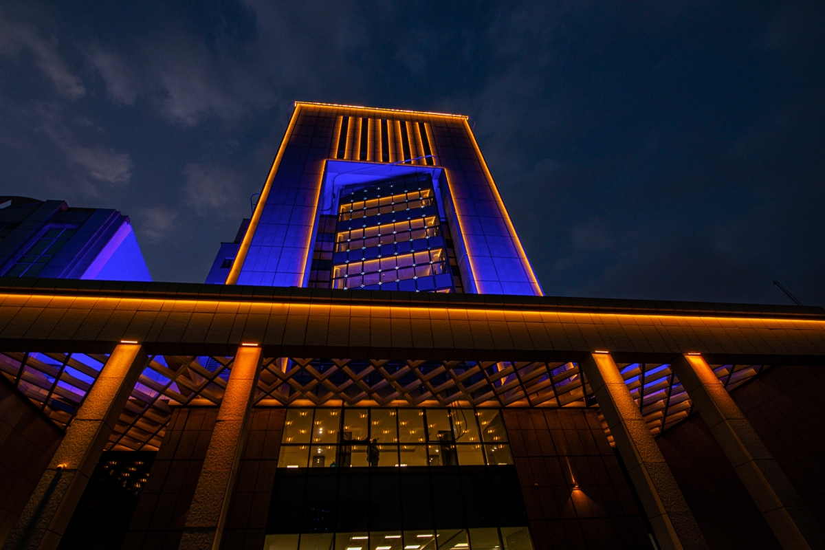 2. Amber light tone with a wavelength of 590 nm is applied to display more architectural details. This colour is a symbol of vibrancy and activity and here, stands for economic transactions.