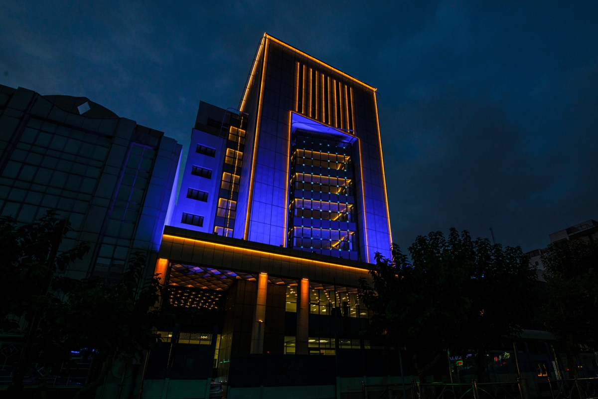 In the architectural design of the façade, an effort has been made to give priority to the continuity of visual elements, simplicity and crystallographic balance of the forms and elements, according to the the size and use of the building in design. The central core of the building, holds a transparent vault, resembles a precious gem within the heart of the structure that represents the vitality and livelihood of the country's economy even at nights.