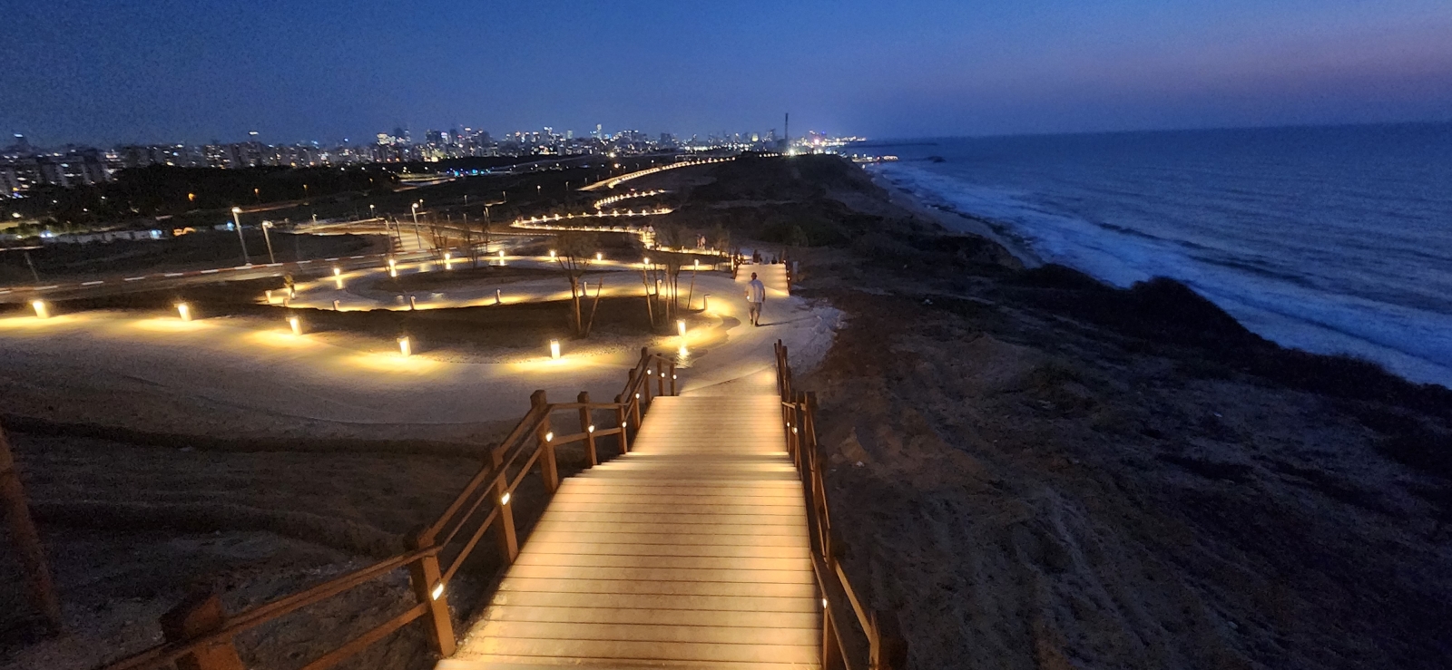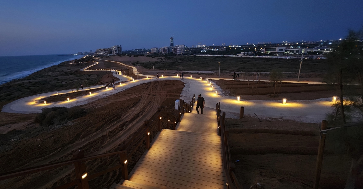 Functional - designing the lighting for the paths and the observation decks, creating sense of security in the park during the hours of darkness, with special reference to the proximity to the sea and the unusual climate conditions.