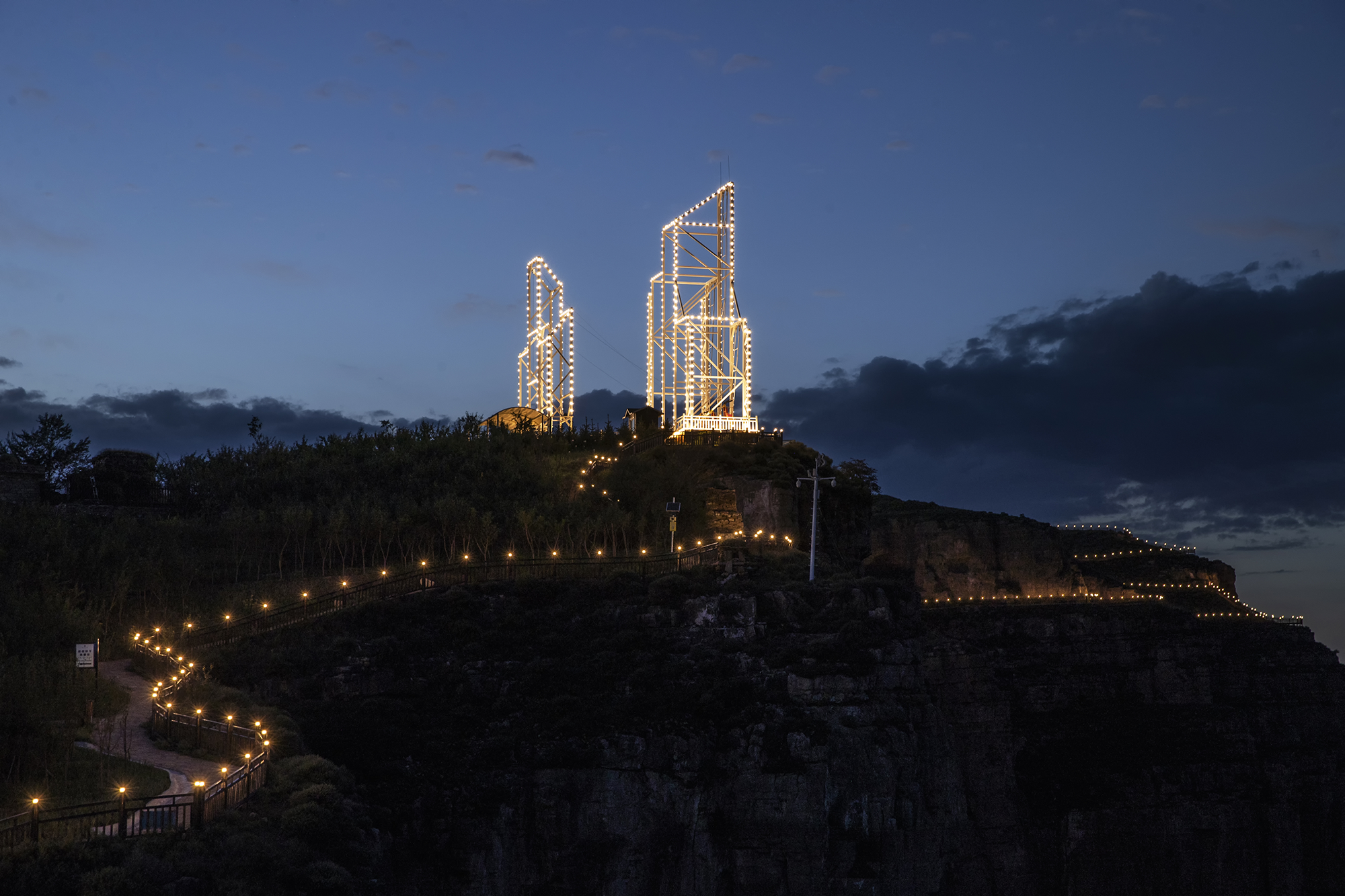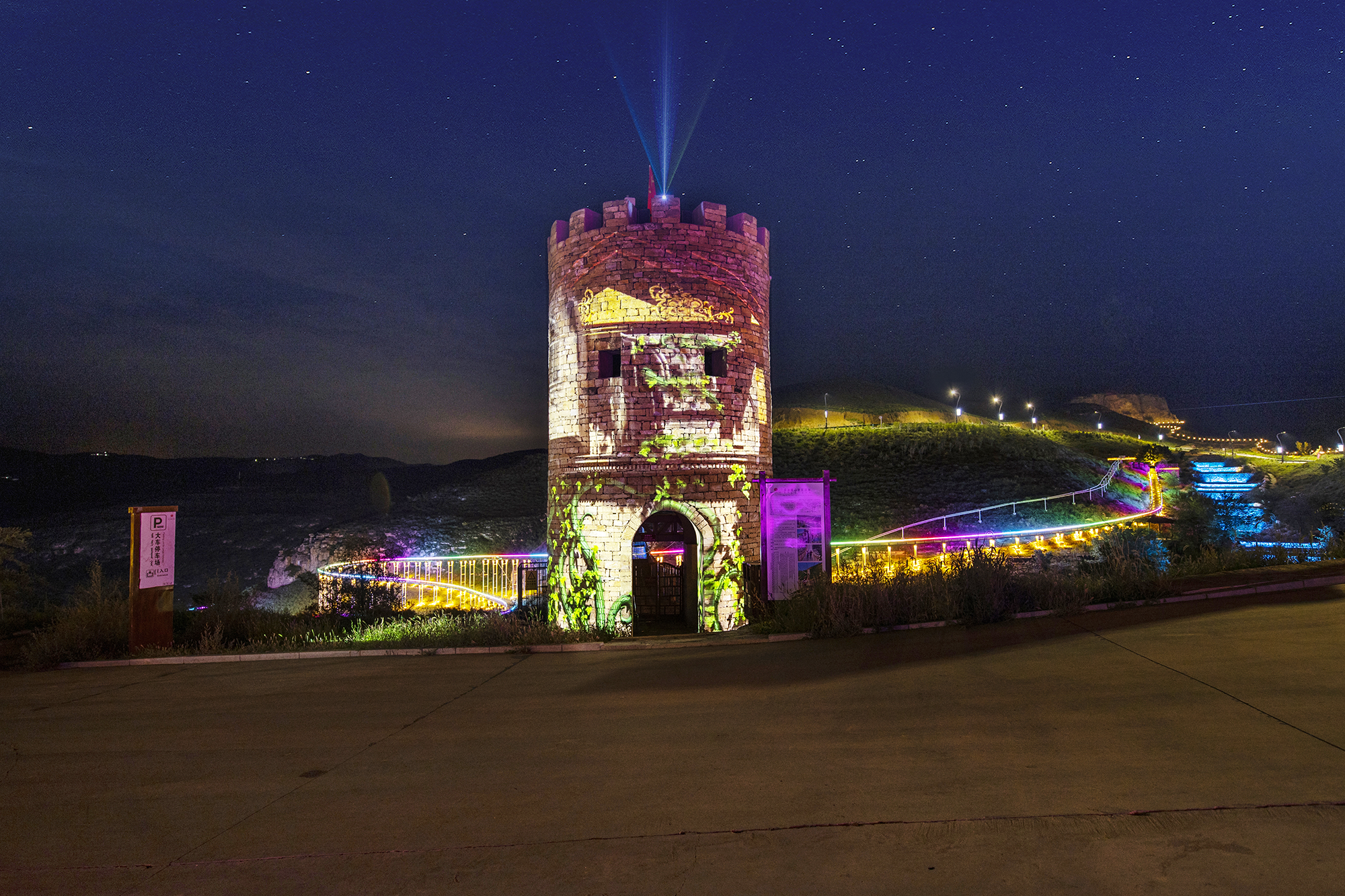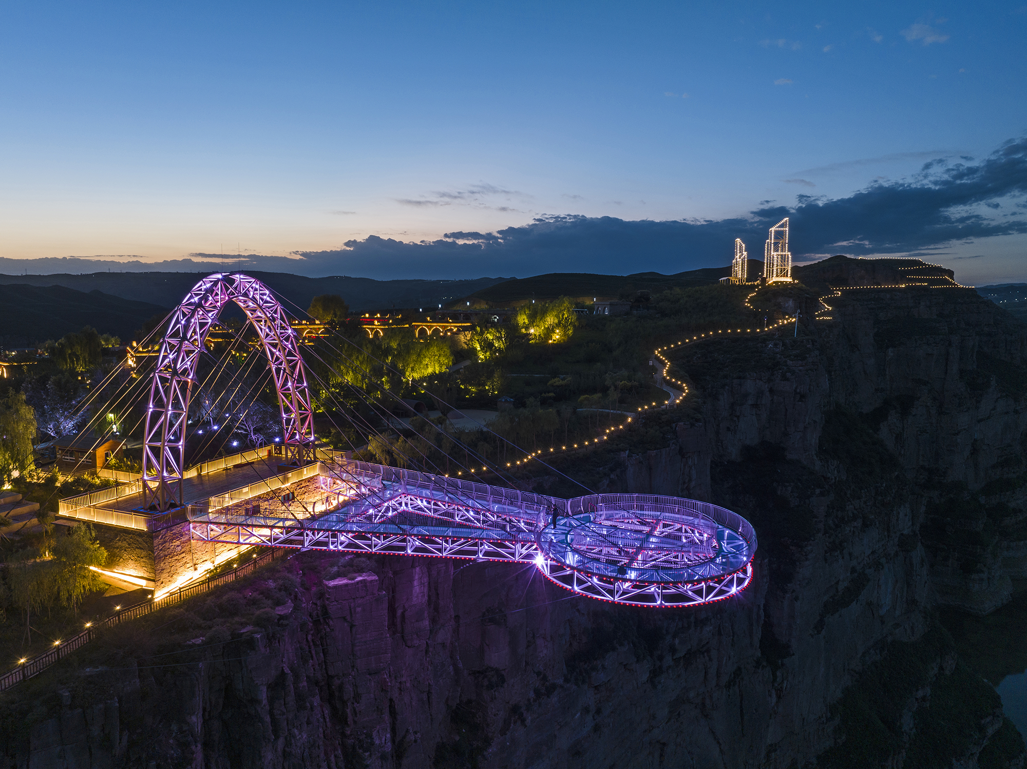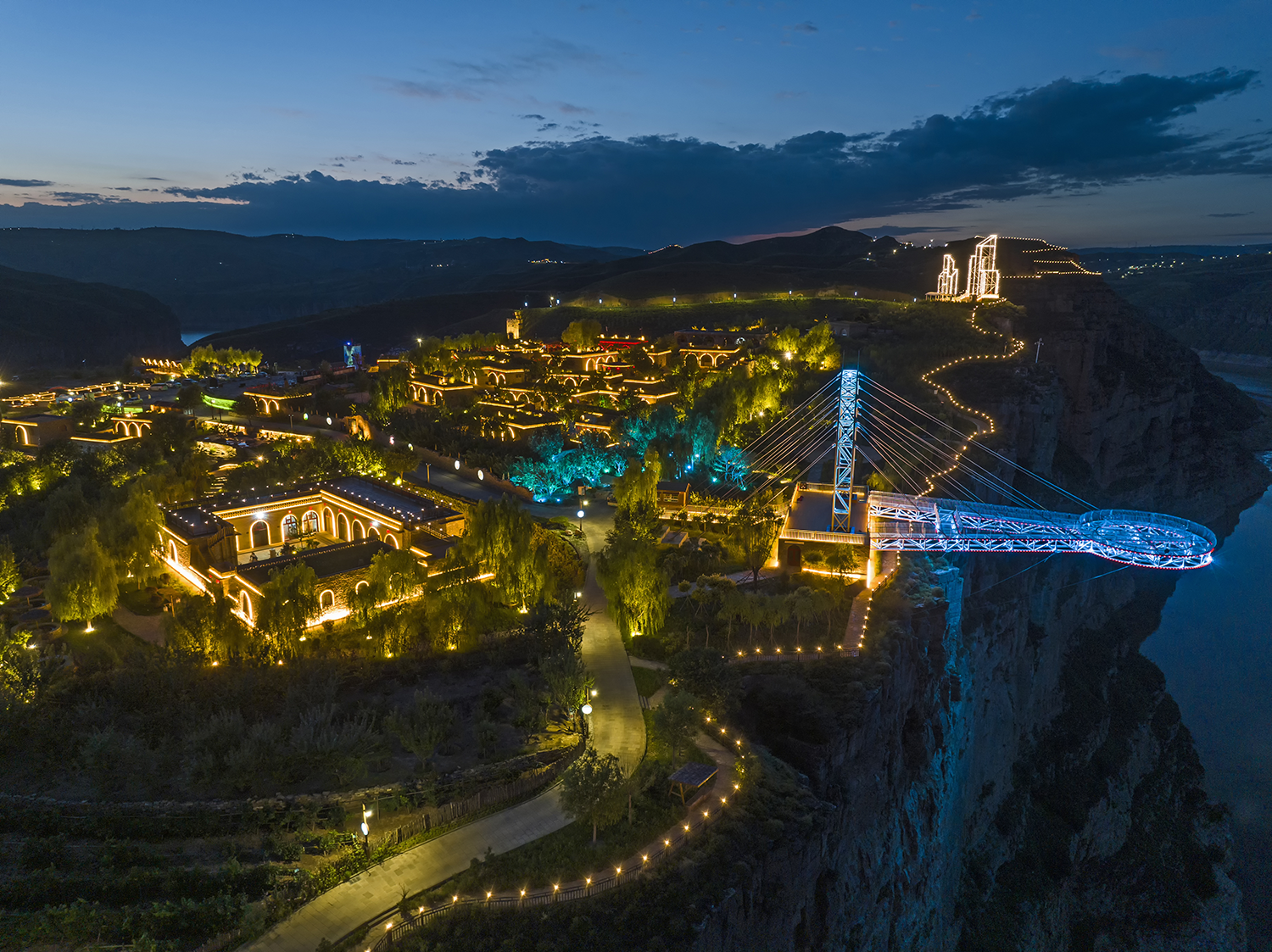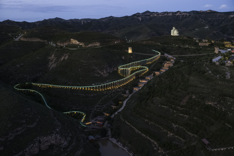 The night tour lighting project takes the road network as the axis and culture as the core. The lighting integrates the ecological scenery of the canyon. It is based on "world vision, Chinese characteristics, and the dream of the Yellow River." It uses "light paints the vast scenery, and shadows explore the magnificent scenery of the canyon" as the concept.