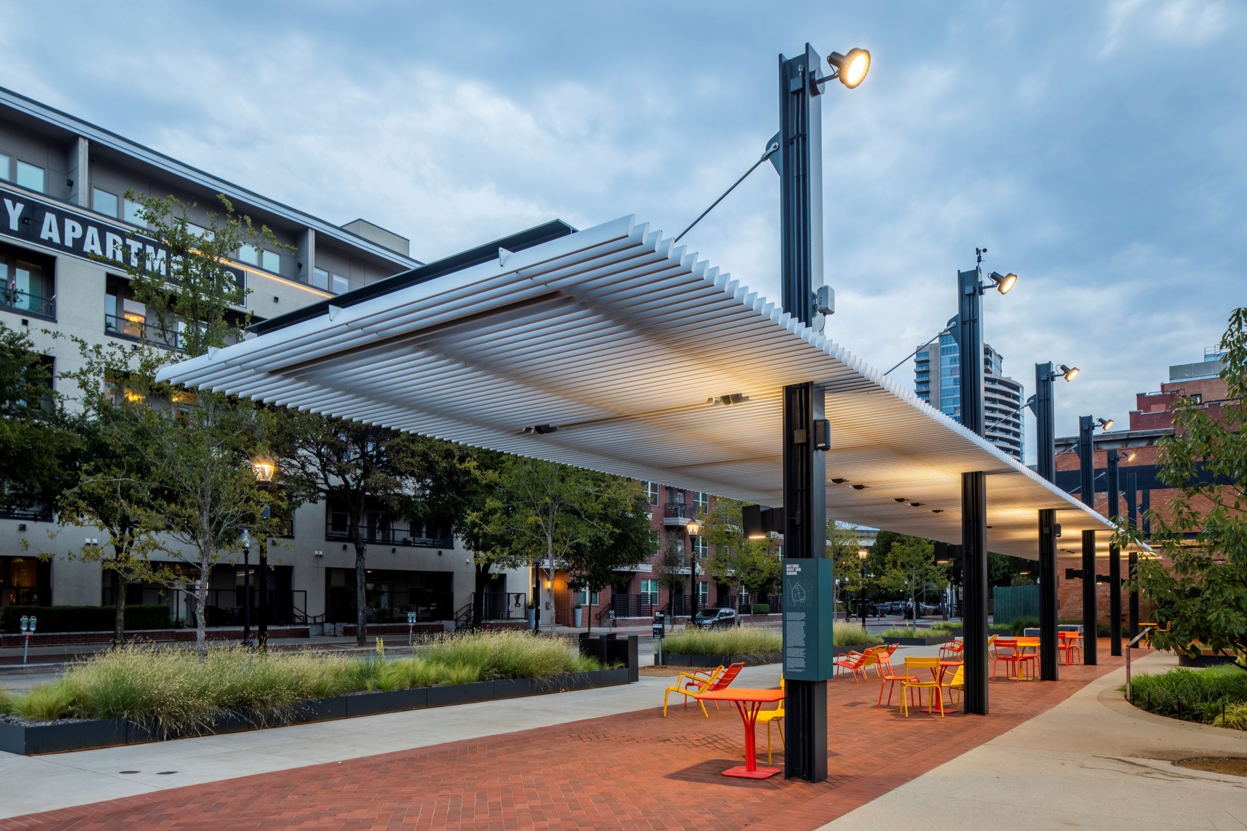 Entry DescriptionWest End Square, a smart park in Historic Dallas, served as a testbed for advanced technologies enhancing leisure and community in public spaces. Its lighting solution, designed with a community focus, sets the example for stellar civic spaces.