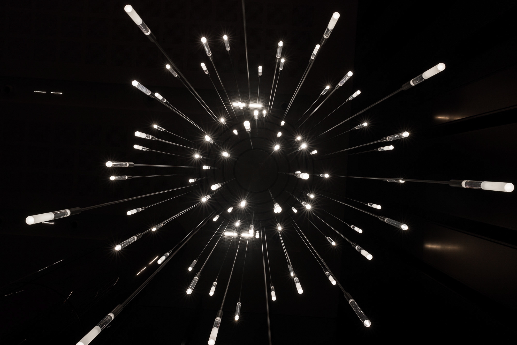 The bespoke chandeliers suspended within the space act as crowning jewels, adding a touch of luxury and visual interest, which enhance the ambience and create a memorable experience for occupants and visitors.