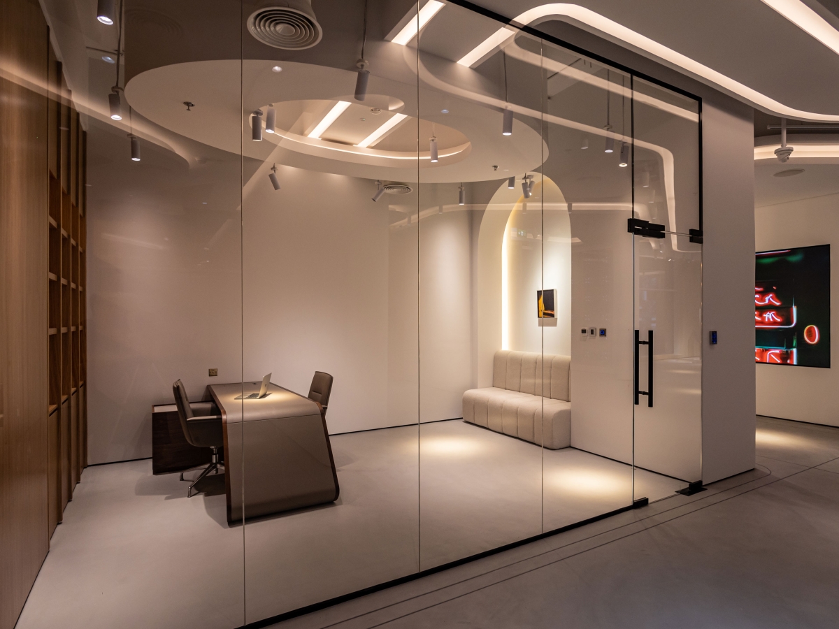 In the workrooms, we use biodynamic light, synchronized with the person's circadian rhythms and gradually changes in different scenes at the appropriate time of the day.