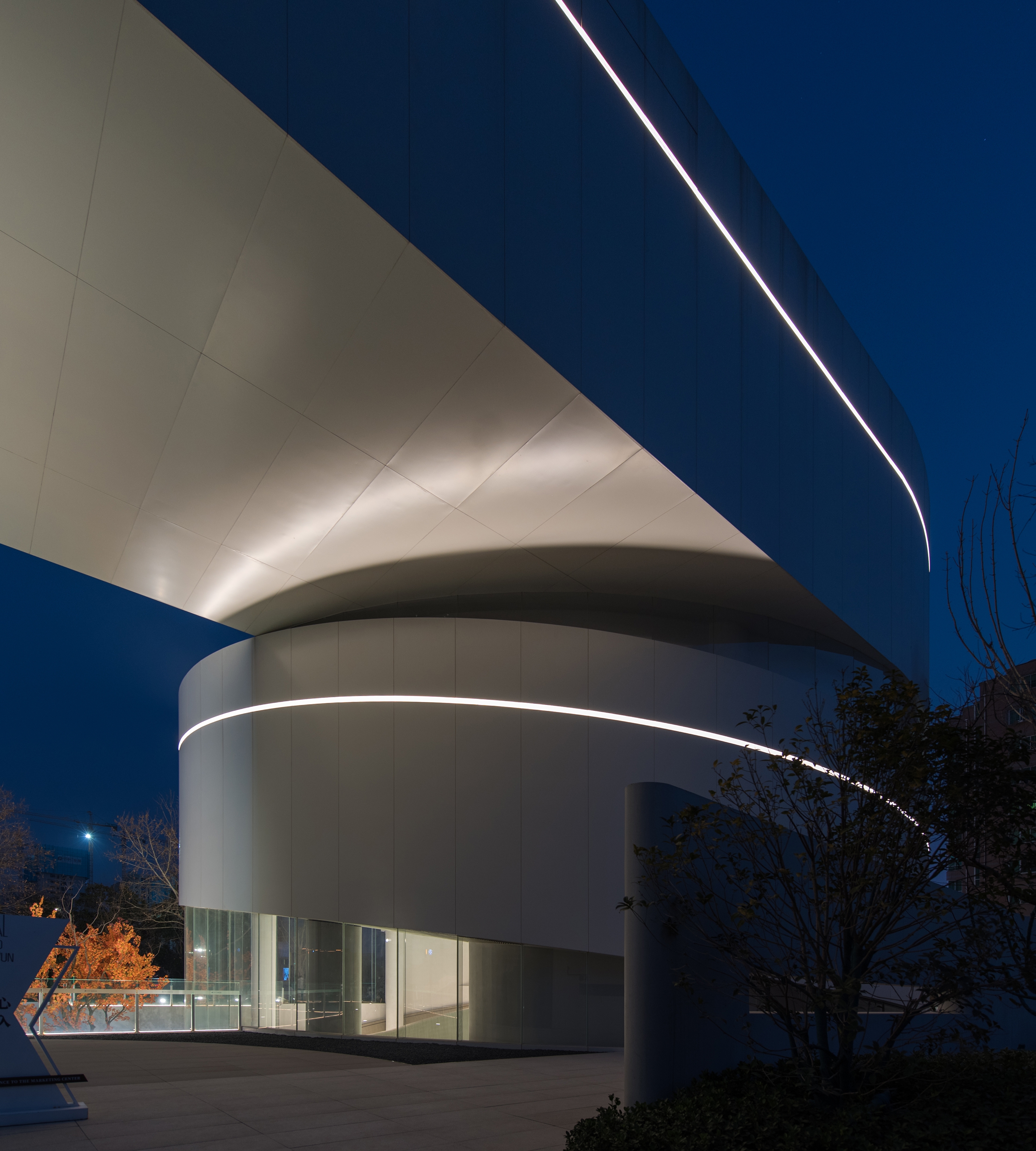 Our idea is not to see any lamps outside the building, but to use the rotating space of the building to hide the lamps, and realize the state of light from bright to dark by controlling different light angles and power. The casting light itself has the effect characteristic of light from strong to weak, and then integrate the shape of the building to let the light radiate from the rotating space. The light on the clean appearance of the building can more clearly highlight the characteristics of the building.