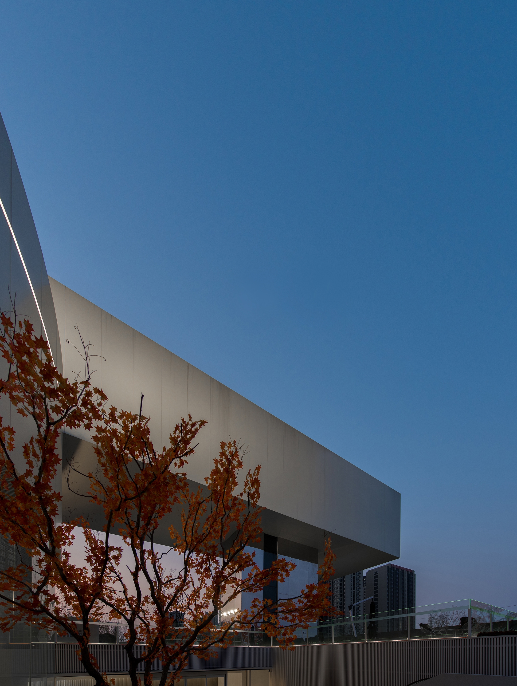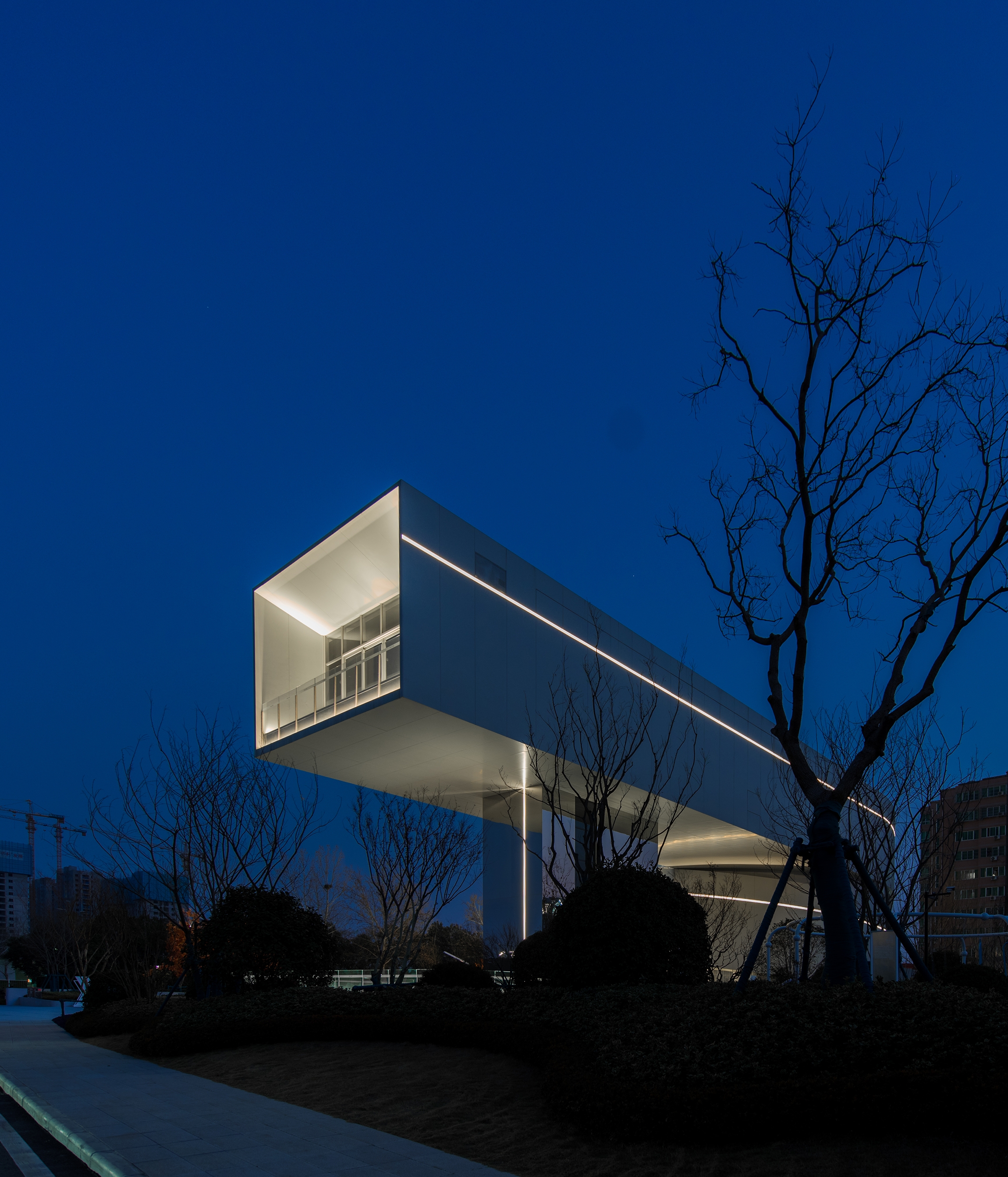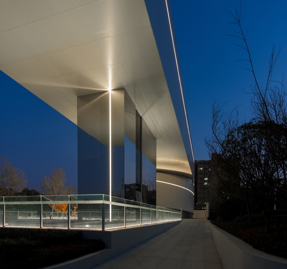 The light of the balustrade is used to gently illuminate the bottom of the building, and the linear lamps are hidden in the grooves of the building. The reflection cross of the lamp grooves makes the shape of the building more clear.