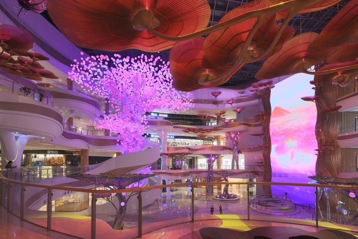 The interior design team together with the theme atrium team created a colorful interior space inspired by the infinite world of surprise and the design concept of "infinite exploration".