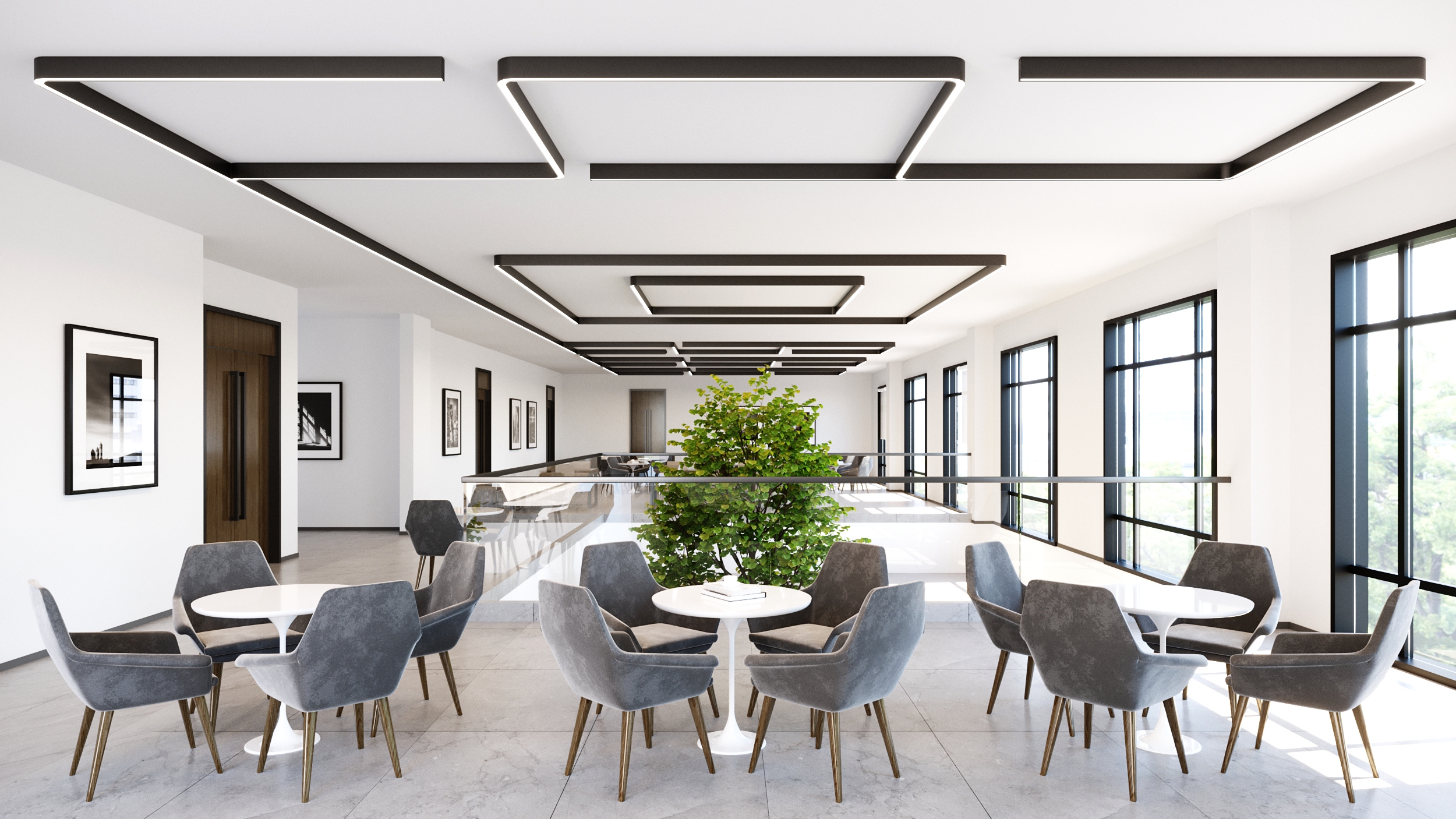 Experience a seamless flow of light that gracefully traverses in every direction. Utilizing a compact collection of modules, effortlessly devise an uninterrupted lighting scheme that seamlessly integrates with the spatial design. Unleash your creativity to construct infinite fluid and curvaceous branches, or opt for structured and symmetrical patterns. The smooth bends of the hubs infuse a sense of lightness into expansive arrangements, creating an inviting atmosphere. As an added option, an indirect lighting feature delicately illuminates the ceiling, reflecting gentle, glare-free light into the room.