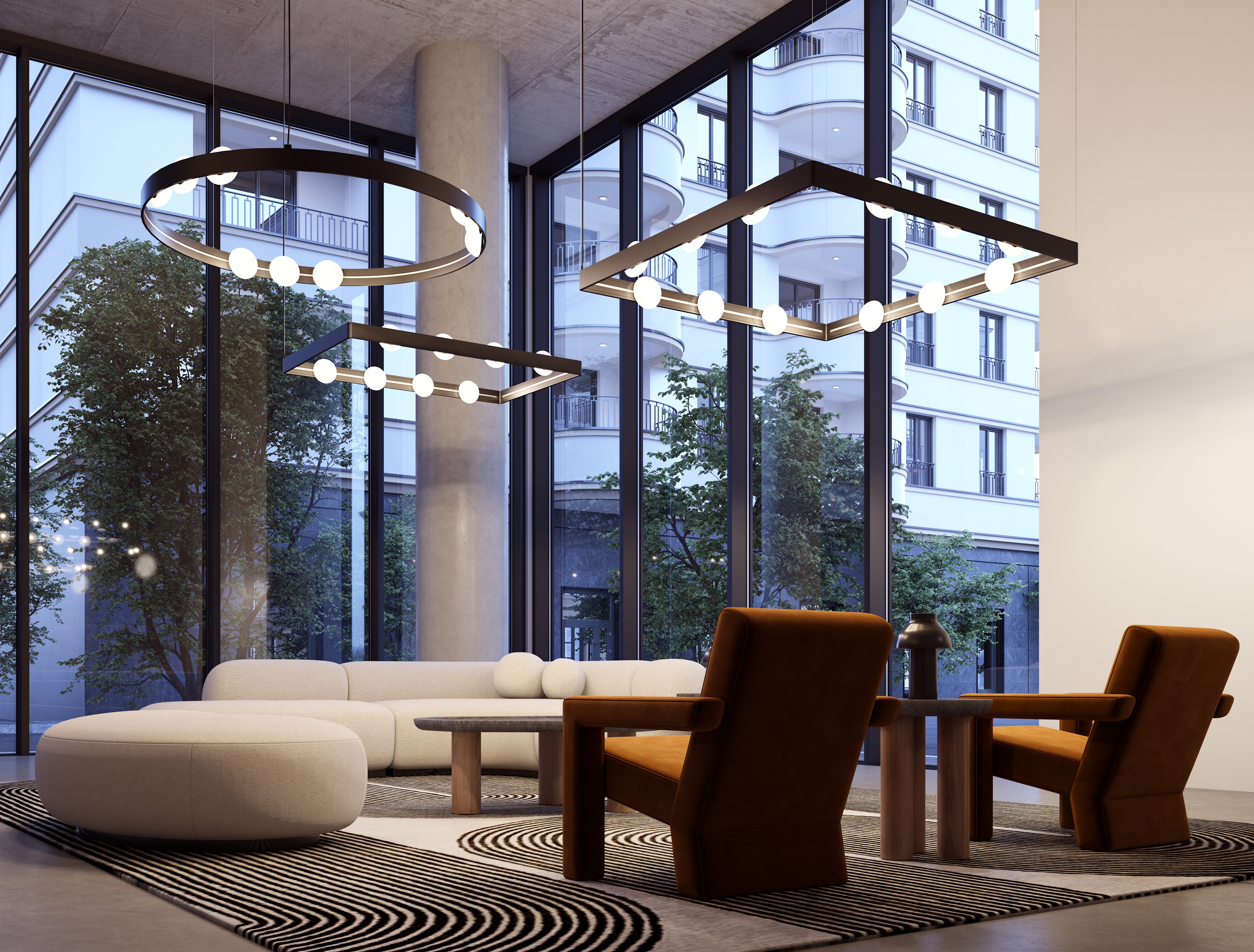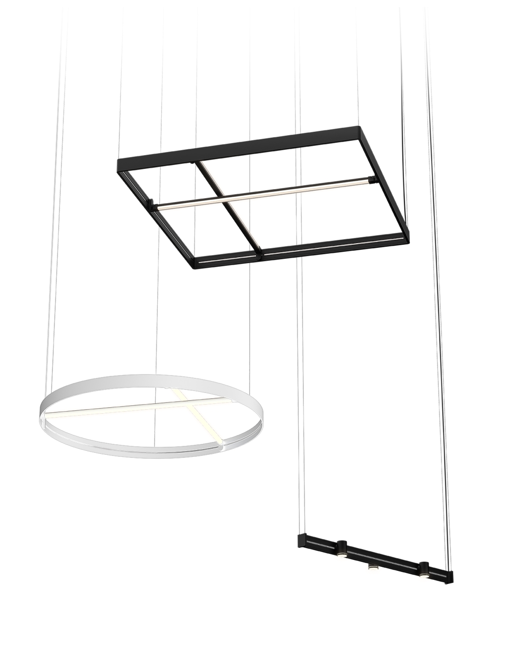 Enhancements now include two new shapes, Straight and Square. Arena Straight has a power strip on each side of the fixture, allowing light source connections on either side. Aircraft cable is doubled-up at each end to prevent an unbalanced fixture. Scaling from 36” to 96” in length, multiple lengths of Arena Straight may be combined to create extended lengths up to 190”. Arena Square is available in 36”x36”, 54”x54”, and 96”x96”, with rectangular iterations of 36”x54”, 36”x96”, and 54”x96”. Designers can use the clean, geometric shapes of Straight or Square to create playful statements in a space.