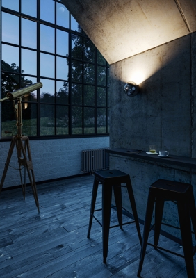 positioned. Although the light source is not visible, in order to guarantee the perfect elegance of the spherical shape, an asymmetric lens enables the recovery of much of the light flow emitted by the