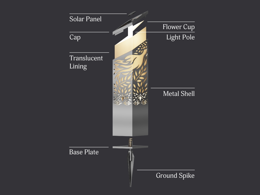 With Spiritum, users carry their personalized light with their community to a chosen location where each person can stake their light into the ground, and the community can organize them into a beautiful memorial.