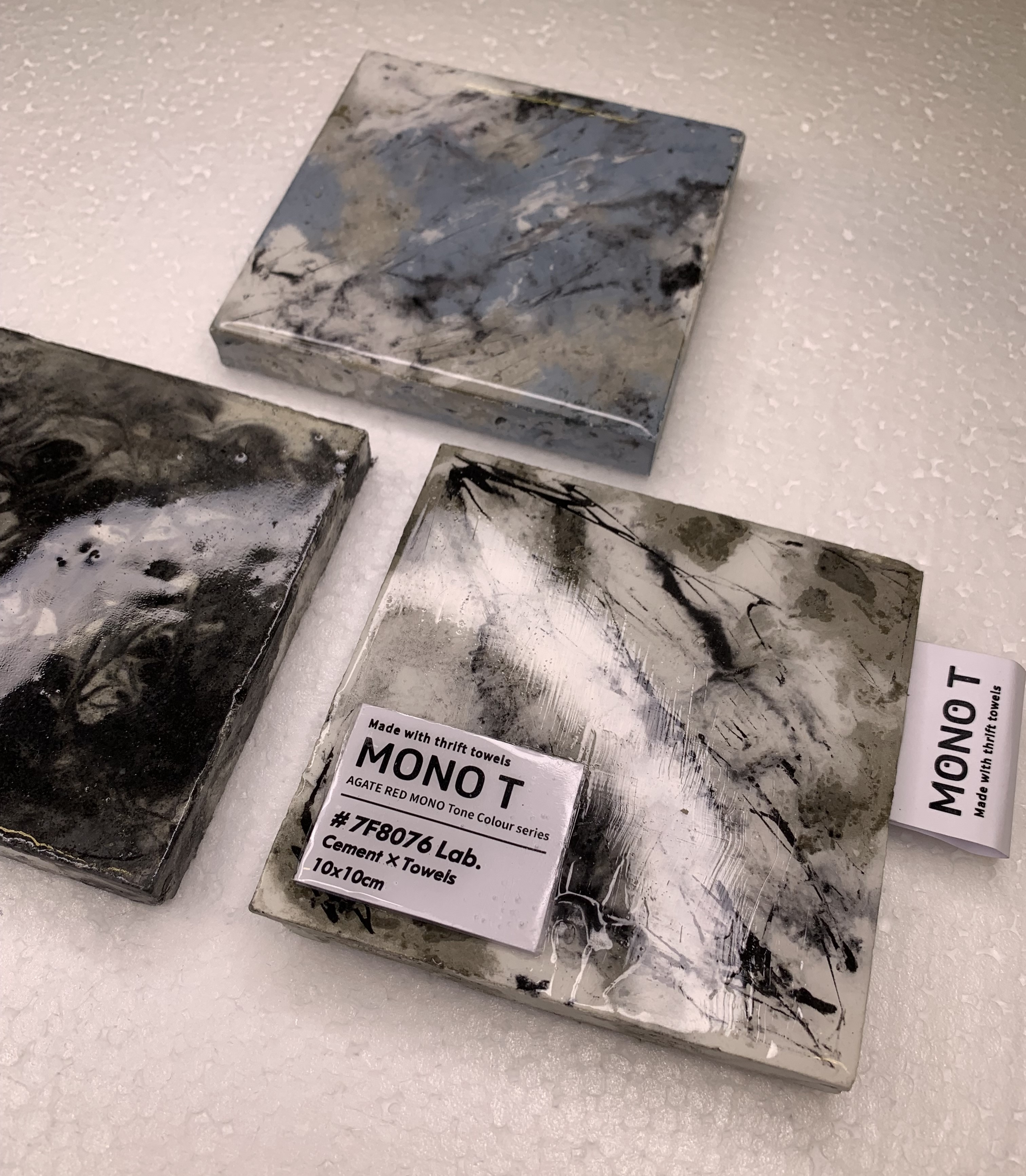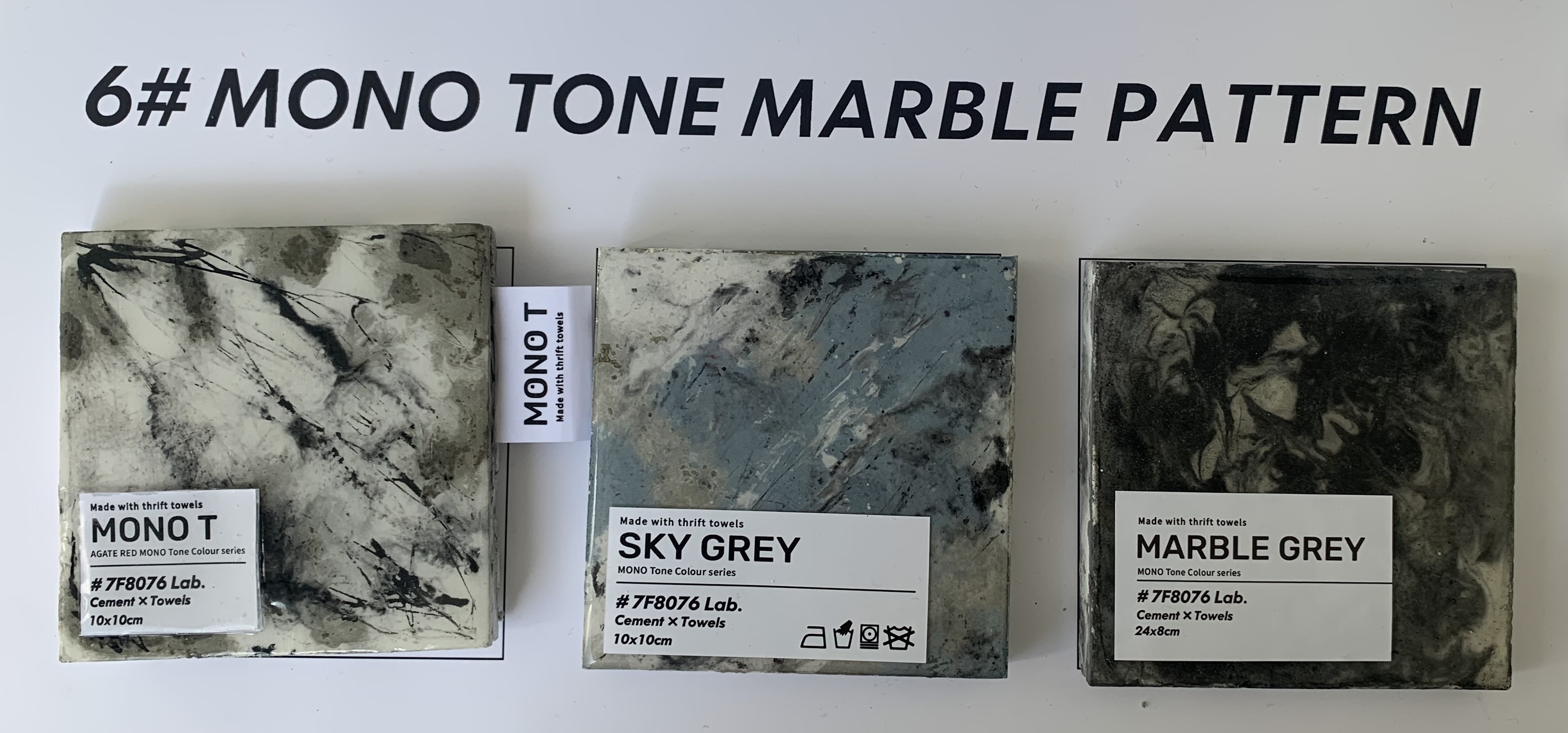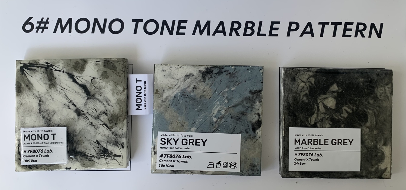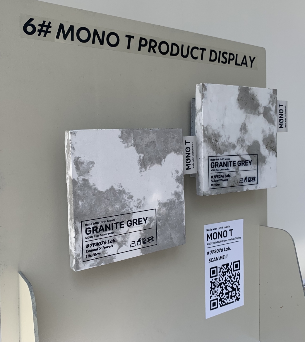 MONO T is a new concrete material created with old towels and cement, recycling the old towels and remake them into new materials can increase their lifespan. Besides only having the traditional colour of grey and white, other colours were made to provide more choices to the customer.