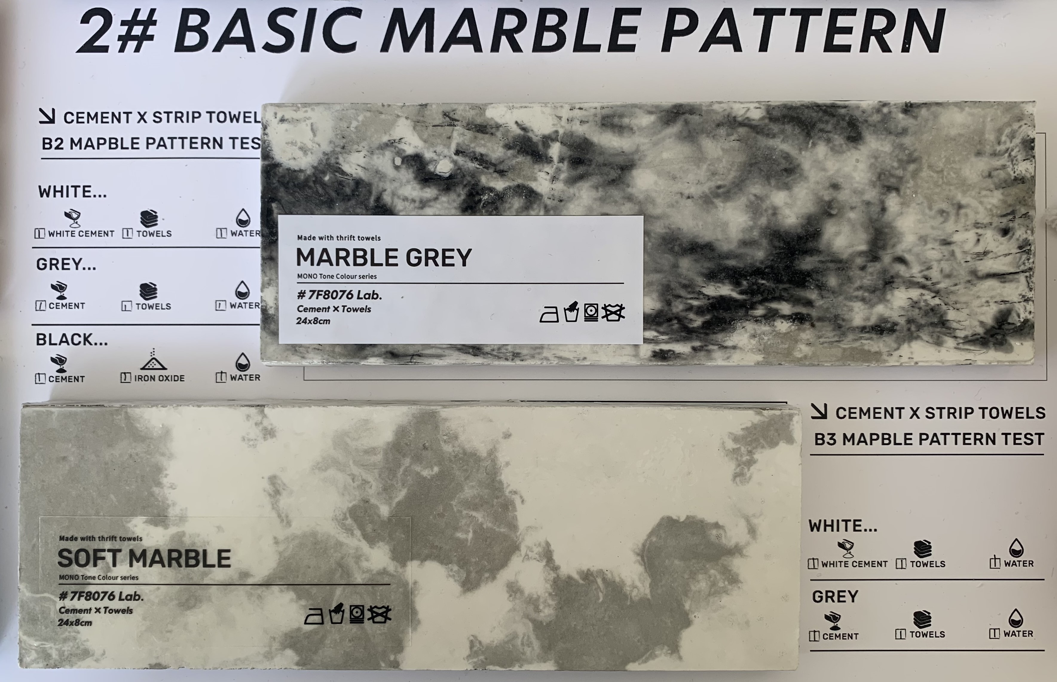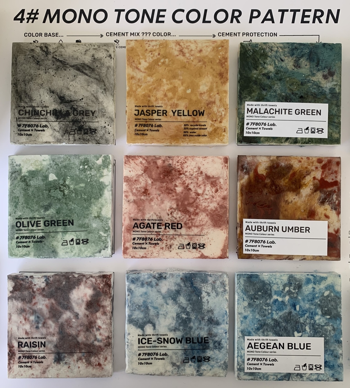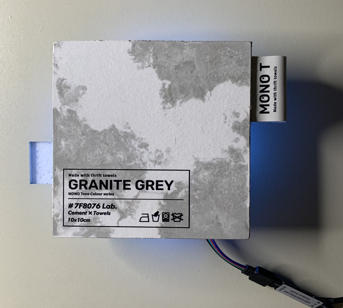 MONO T is a new concrete material created with old towels and cement, recycling the old towels and remake them into new materials can increase their lifespan. Besides only having the traditional colour of grey and white, other colours were made to provide more choices to the customer.