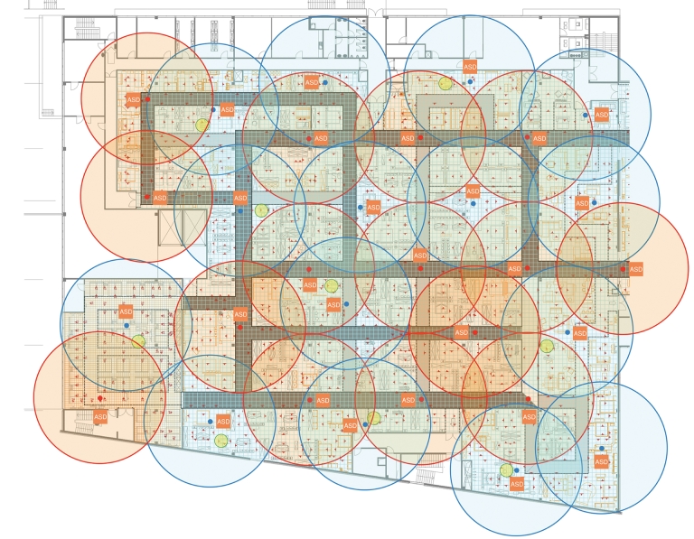 Due to the large number of luminaires, several luminaires are supplied by one unit, rather than each luminaire having its own control gear. This minimises the consumption of resources and makes control easier.