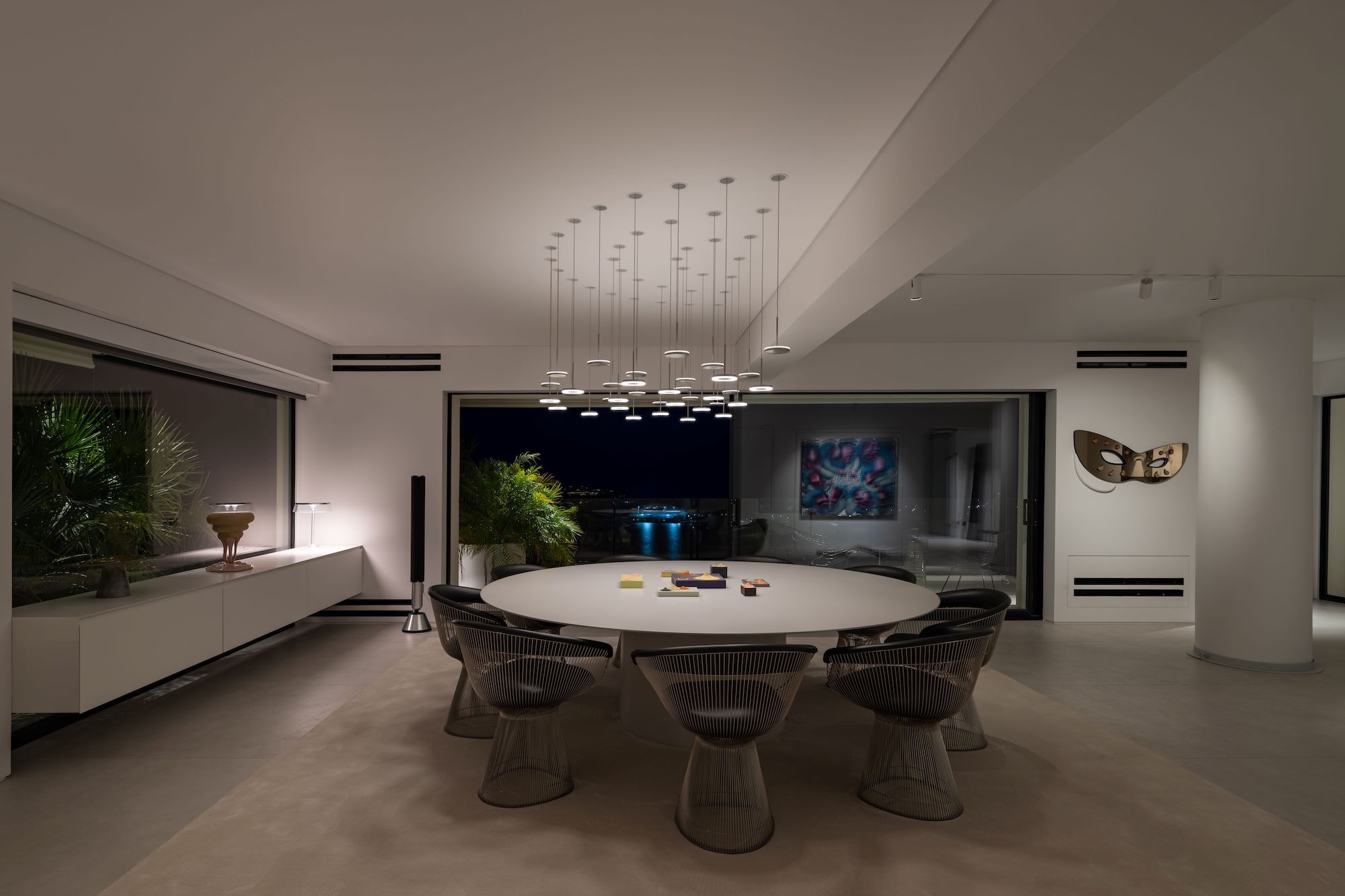 Entry DescriptionThe lighting of this amazing project plays a vital role in defining the property’s character and value. The penthouse is developed via three levels and was conceived by the owner as an “art & design gallery” with stunning views overlooking the magnificent bay of Vouliagmeni, on the Athenian Riviera.