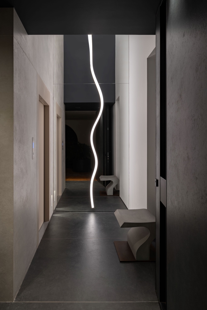 A touch of color was ‘sprinkled’ on top as an additional layer of light, via innovative color changing luminaires integrated into the lighting scenes in order to seamlessly blend with each lighting atmosphere. Custom installations were used for the dining table and main entrance with a 20m flexible luminaire acting as the precursor to the art-filled penthouse inviting and hinting to guests as to what they are about to experience!