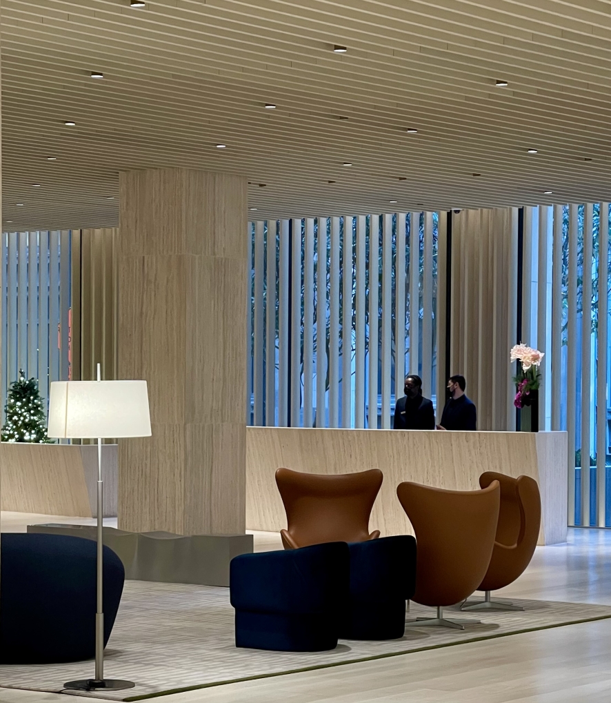 An all-new reception lobby adds contemporary warmth in keeping with Gropius’ minimalist modernism.