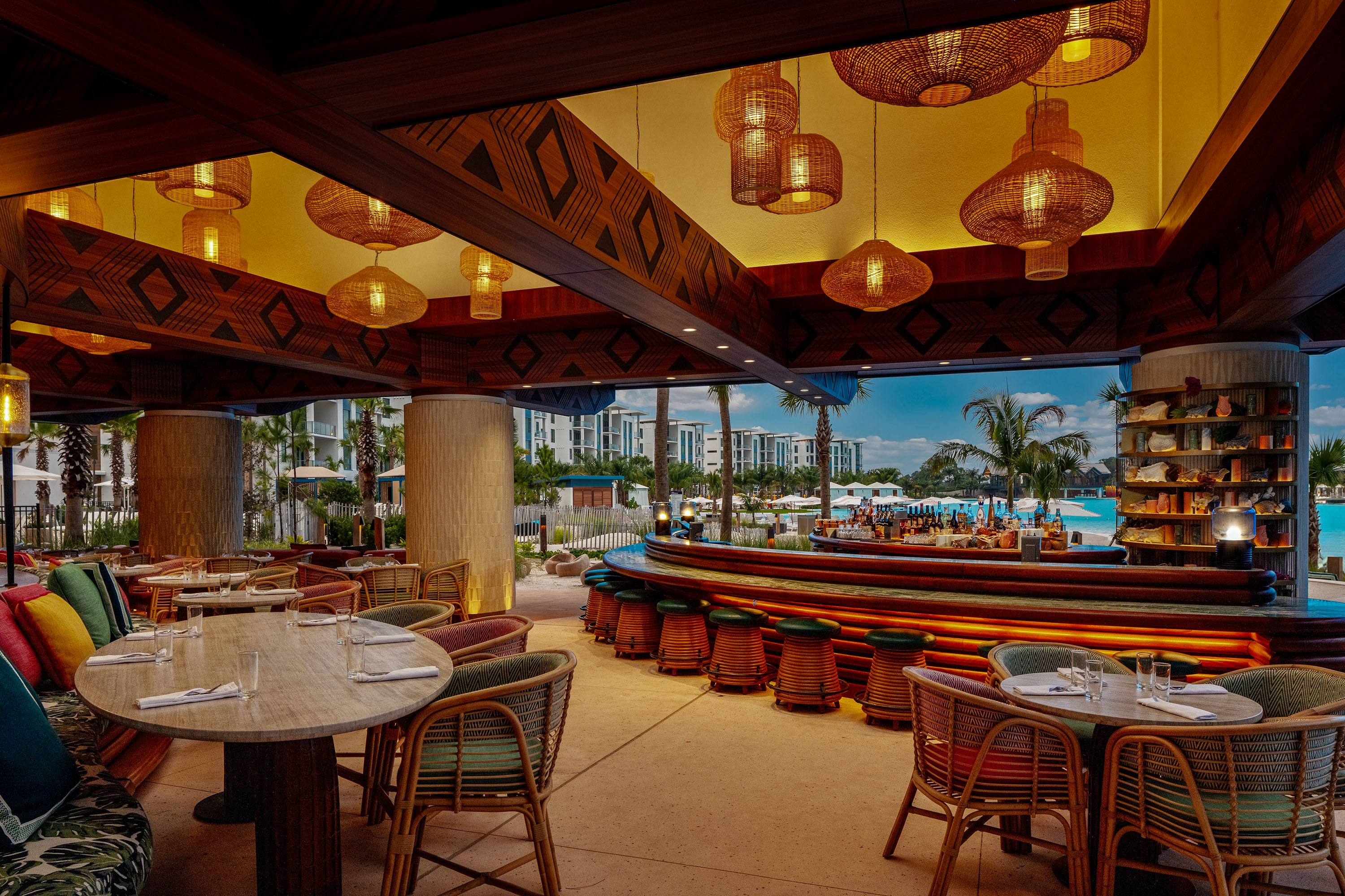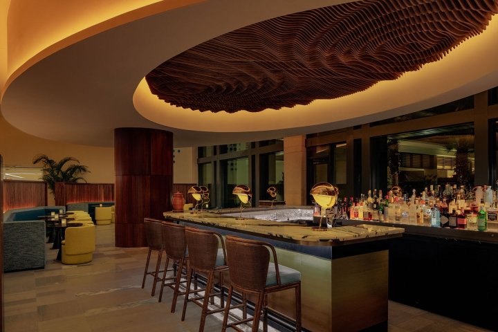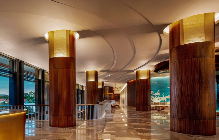 Entry DescriptionThe hotel, perched on a 12 acre lagoon, has water as its central theme. The lagoon’s curves, visible out of almost every public window, are translated in ceilings, balustrades, stairs, bars, atriums, furniture, artwork and finish patterns. The architectural lighting that follows and celebrates these elements highlights the flowing softness of the interiors. As night falls, the evening mood begins dimming and warming to a soft, golden incandescent ambience that transforms the spaces into luxurious, comfortable and romantic venues and circulation. Architectural uplighting and indirect sources are concealed in coves, columns, walls, mullions and wainscot in a creative and subtle approach to avoid downlighting and create a unique experience for the guest. The lighting design philosophy is focused around indirect illumination and warm-dim sources. Adjustable recessed accents are purposefully used throughout to accent artwork and feature elements. A centralized dimming system is employed to carefully balance the multiple sources, effects and features with automatic astronomical control from daytime, evening and throughout the night. All sources used are high-efficiency, warm-dim LED. All applicable energy codes were met and exceeded in many spaces. While value engineering was minimal, some specification substitutions were made by ownership to deliver the project on budget.