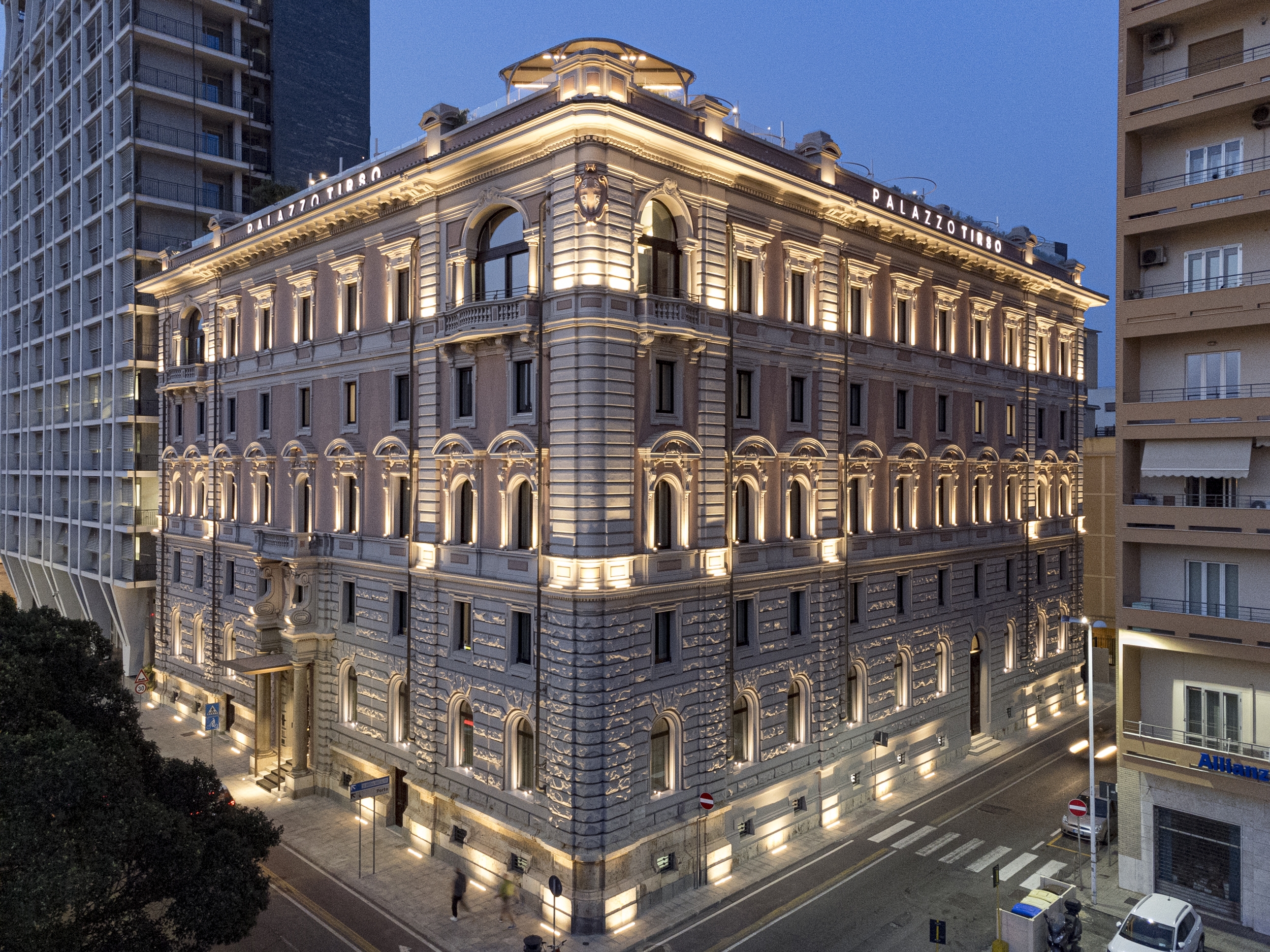 Entry DescriptionThe lighting project for Palazzo Tirso Cagliari – MGallery Hotel Collection 5* required a year of planning carried out in close contact with the property as well as the executing company Gruppo Puddu Costruzioni and the Milanese interior design studio Marco Piva. The project involved the monumental facade and interiors of the hotel. The building has a history that begins from the year of its construction, 1926, designed by the Cagliaritan architect Flavio Scano and one of the first examples of neoclassical architecture in reinforced concrete in Sardinia. Over the years it went through various ownerships until it was purchased by the Puddu Costruzioni Group. We gave great importance to the relationship between light and shadow, perfectly balanced in order to create the right contrasts and the correct three-dimensionality of the environments, thus directing the gaze on specific parts of the furniture or on historical elements. The central point of the lighting of both the bar and the restaurant are the custom suspensions, made of solid, calendered and milled aluminum profiles. A separate chapter concerns the lighting of the important fac?ade. Through grazing and accents, the result obtained ensures that the facade becomes a characterizing element of the entire hotel structure, giving greater importance and value to the entire building, being visible even from the marina.