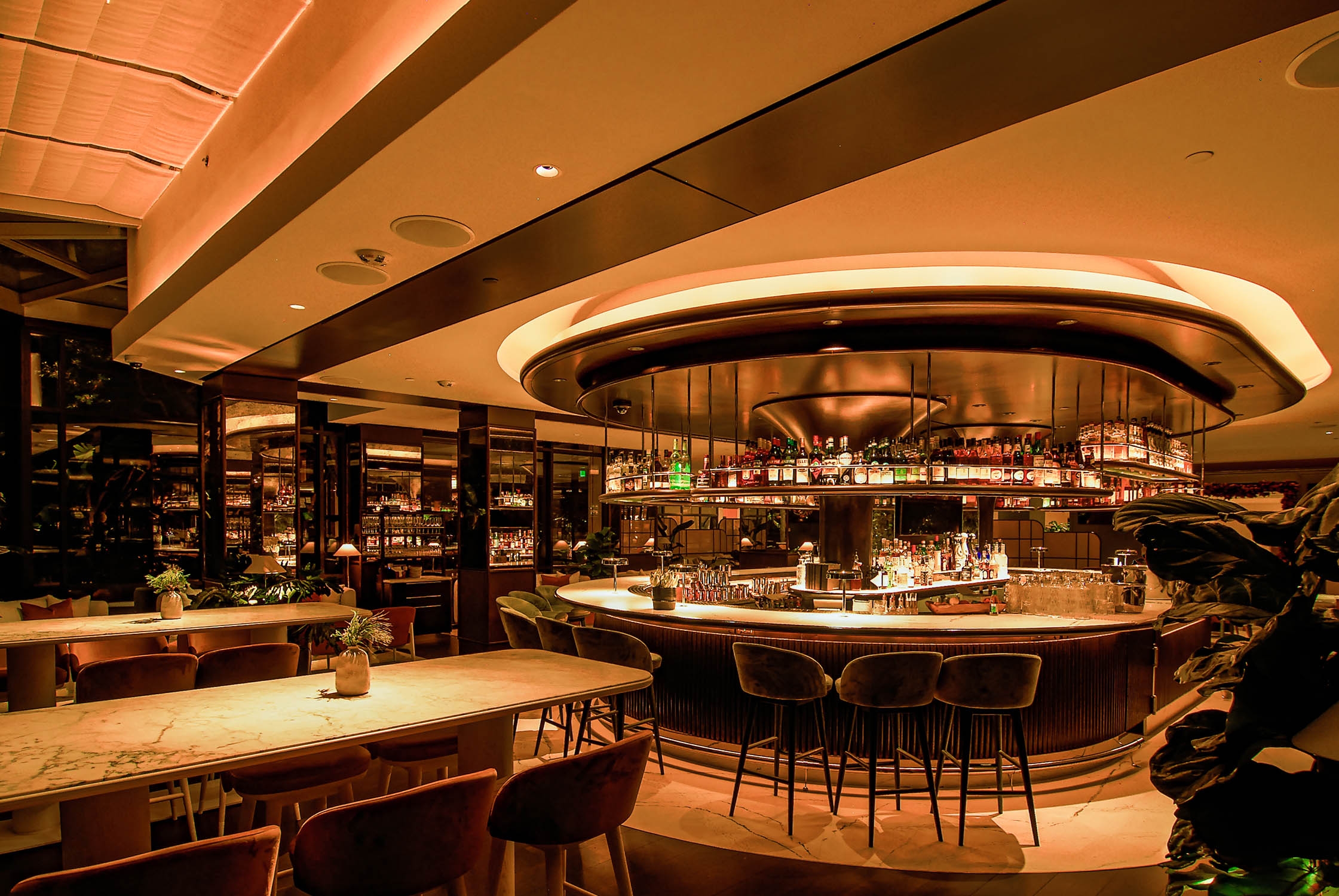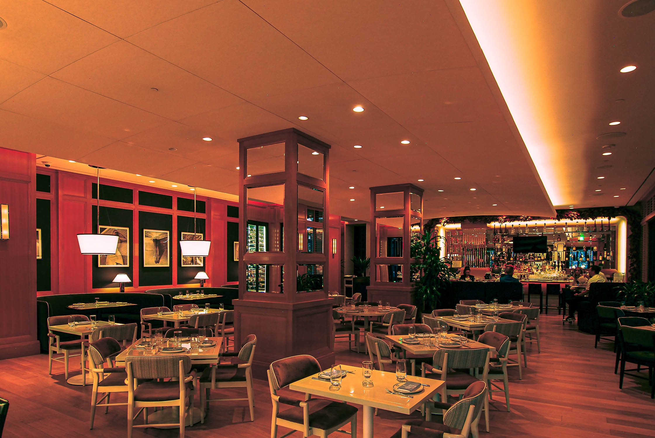 Entry DescriptionThe Pendry in Newport Beach is one of the first few properties of the new Montage brand. The architectural lighting celebrates the rich interiors and highlights the artwork, shelving and displays. Lush interior planting is a keystone of the Pendry brand and accenting it throughout was important design criteria. The evening ambience begins dimming and warming to a soft, golden incandescence that transforms the spaces into luxurious and sexy venues and circulation. The existing building’s transformation into the project’s vision was challenging at best. There were five different disconnected dimming systems for various areas of the building that had to be calibrated and manipulated to function as one. A centralized dimming system is employed to carefully balance the multiple sources, effects and features with automatic astronomical control from daytime, evening and throughout the night.All sources used are high-efficiency, warm-dim LED. The lighting design met Title 24 requirements. While value engineering was minimal, some specification substitutions were made by ownership to deliver the project on budget. As this project was a renovation of a former Four Seasons Hotel, almost daily coordination with the site was required for a successful installation and control system updates.