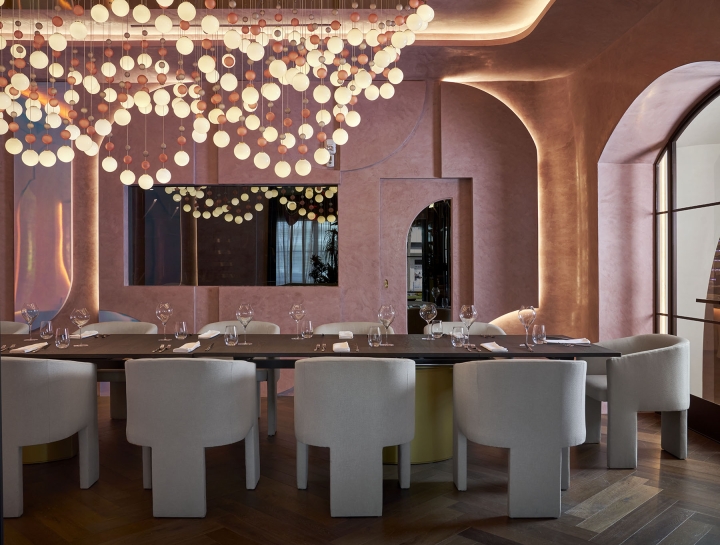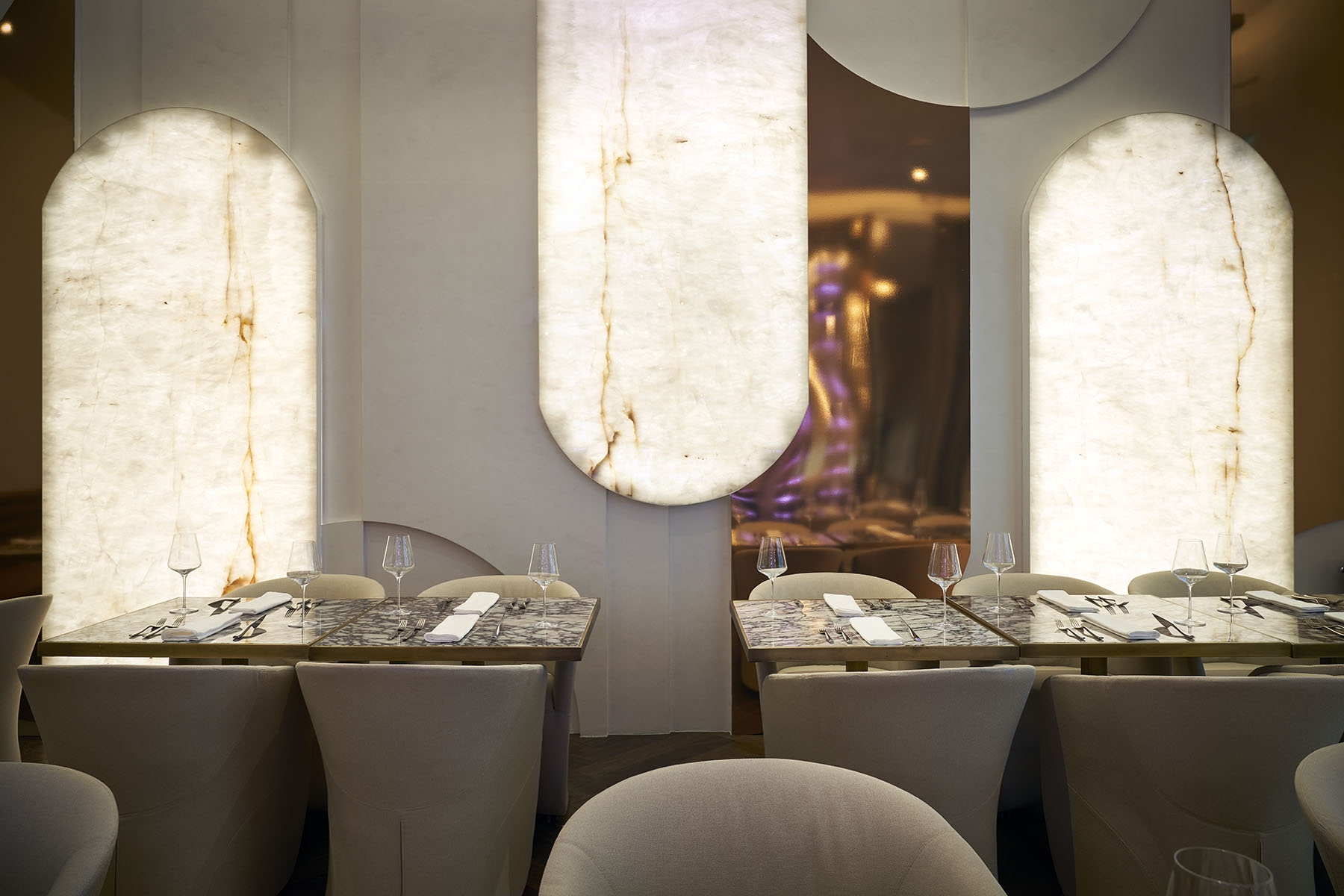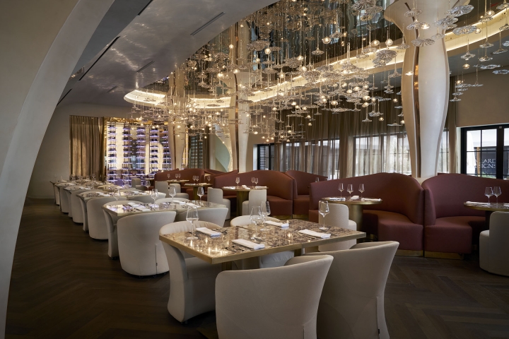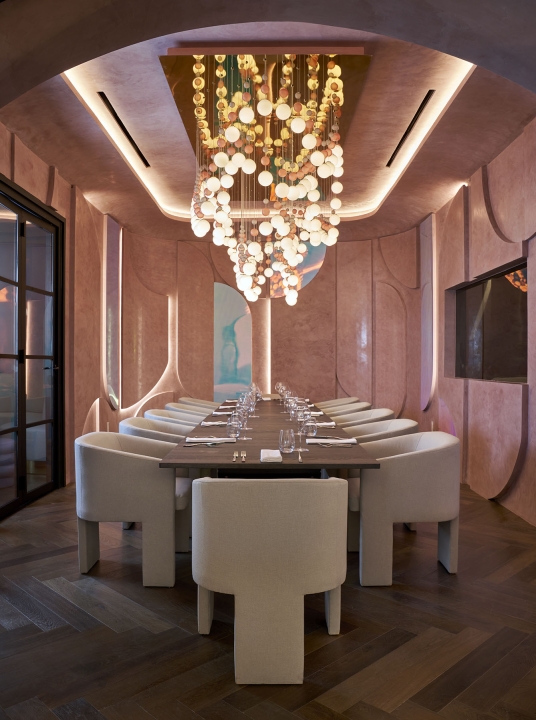 Entry DescriptionThe unique Cocody Restaurant is an enchanting fusion of cultural exploration and contemporary sophistication. The 7000 square foot space greets patrons with warm elegance, through all the layers of light. The space creates moments of grandiose experience as you pass through the spaces and when seated to dine the space converts itself into an intimate setting as you dine under the stars created by the beautiful chandelier at the center of the dining room. This restaurant offers different experiences according to each space, the lounge gives a feeling of tranquility through color-changing indirect lighting and delicate pendants hanging from the ceiling. If you desire a private and exclusive experience with the chef the restaurant offers a private dining experience that is met with variety of flavors of light at the chef’s table. Just like the playful cuisine the architecture of the chef’s table room is met with lighting that creates a rich ambiance through accents within the walls, indirect general illumination through indirect lighting and to add scale to the room a beautiful chandelier that sparkles differently with every bite!