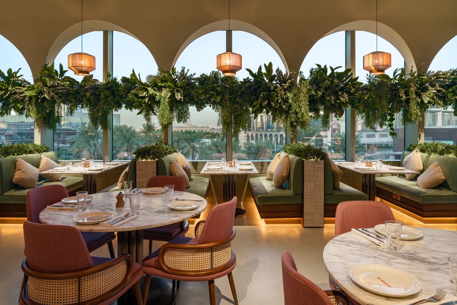 Entry DescriptionThe Al Mamlaka is the first restaurant in Riyadh where diners can experience high-quality food from all over the world, under the same roof and it is open for nearly 24 hours each day. The lighting design utilised a layering of light to accent details while playing with colour temperature to bathe the dininghall with an opulent yet intimate feel.