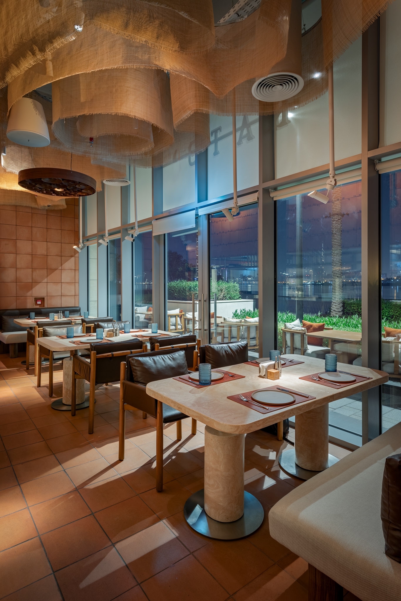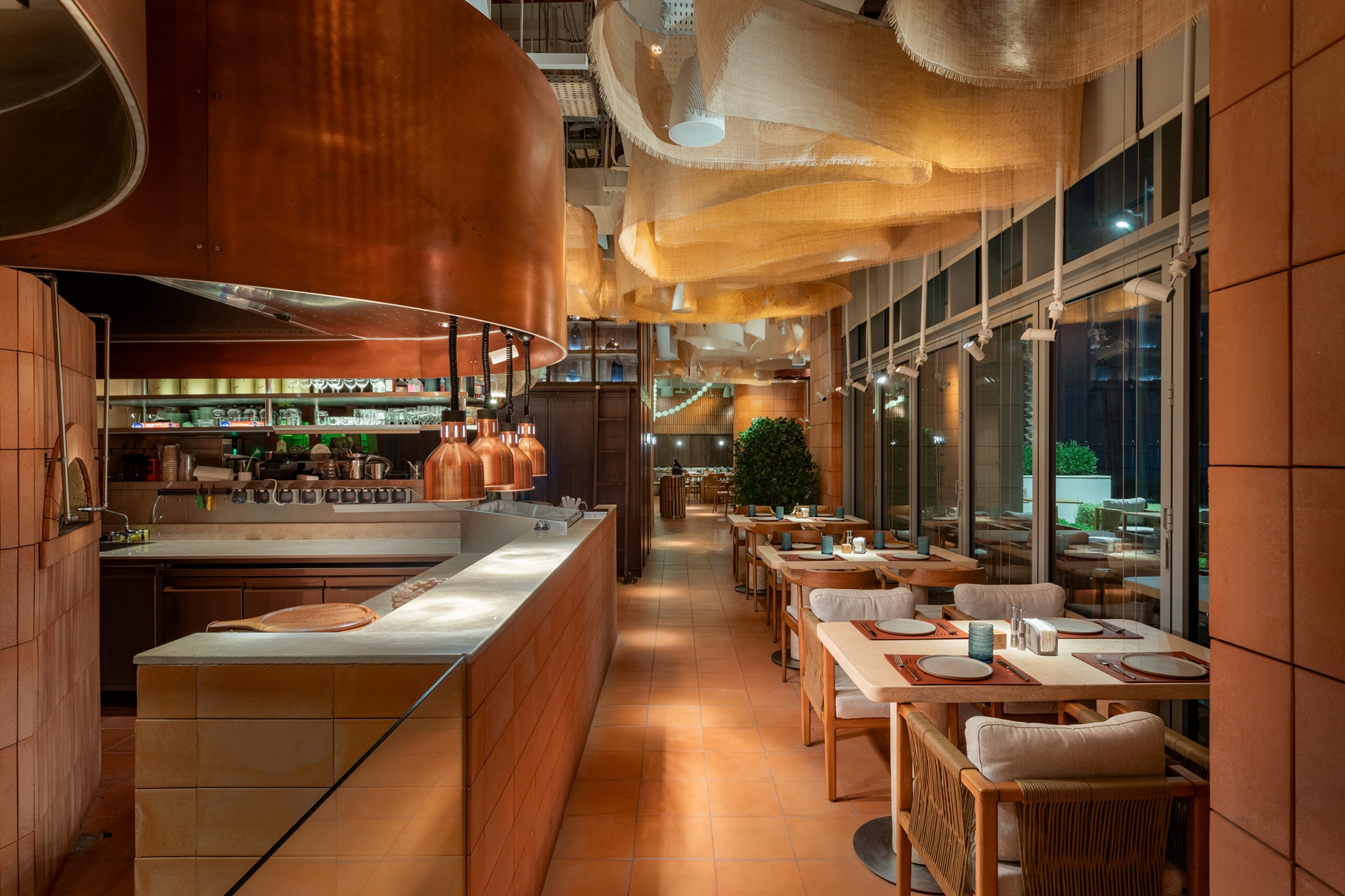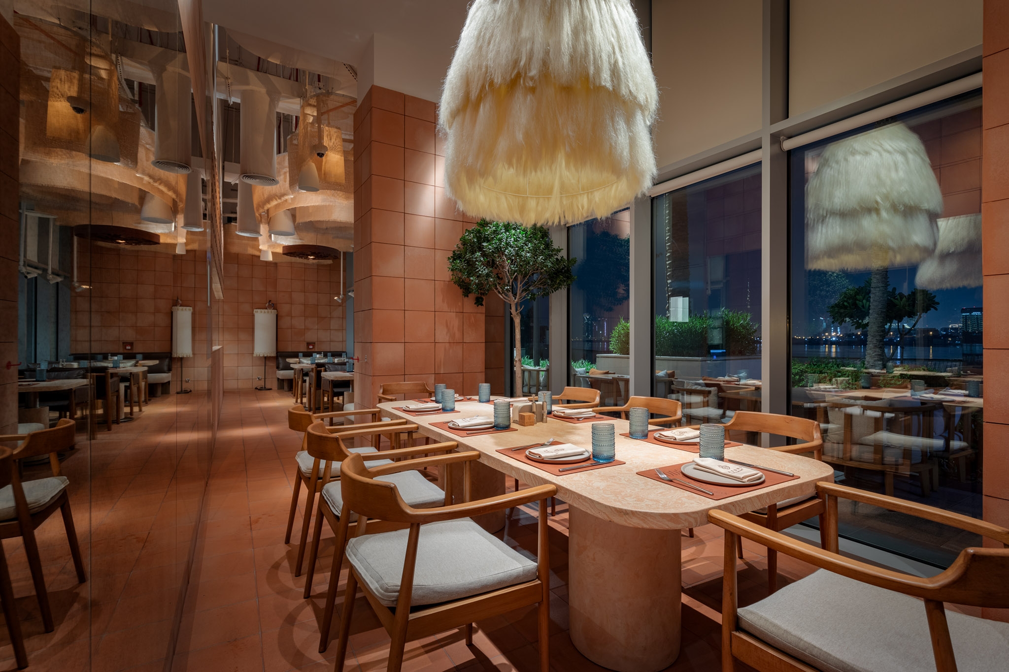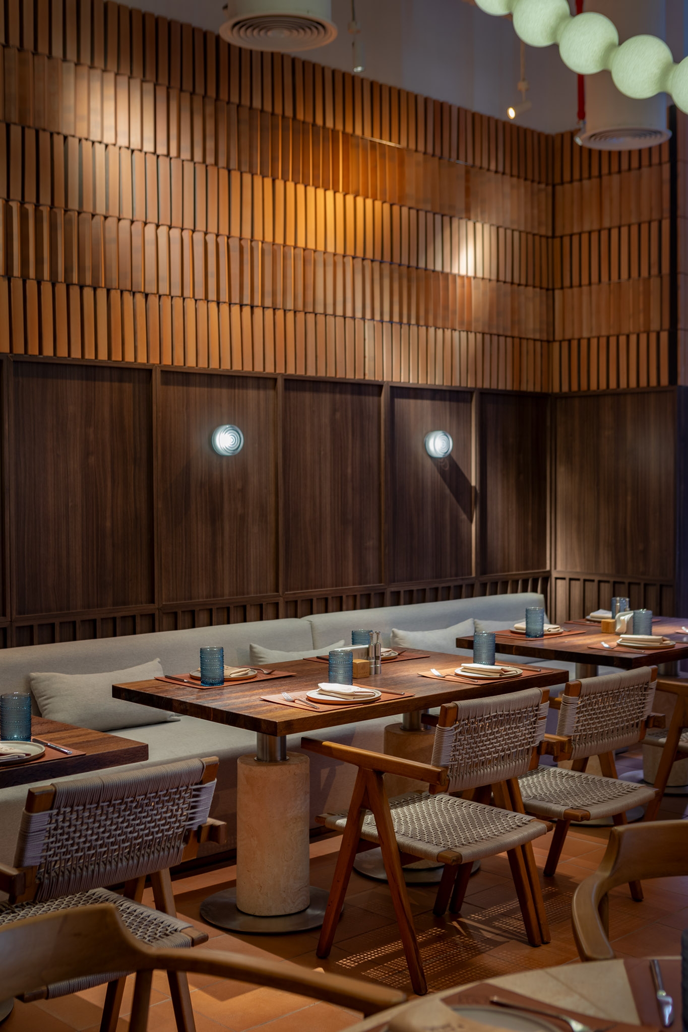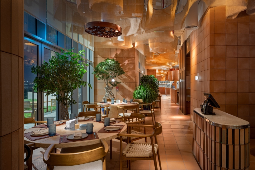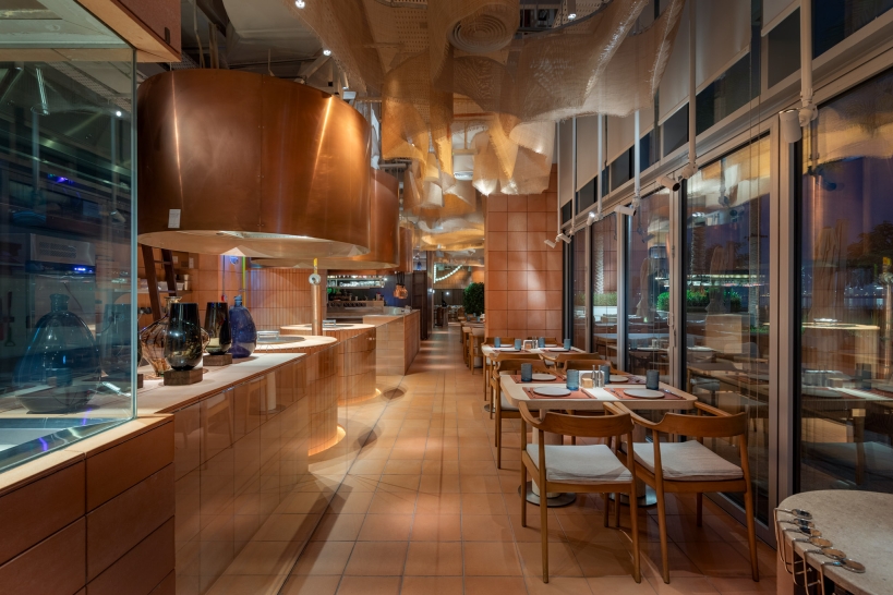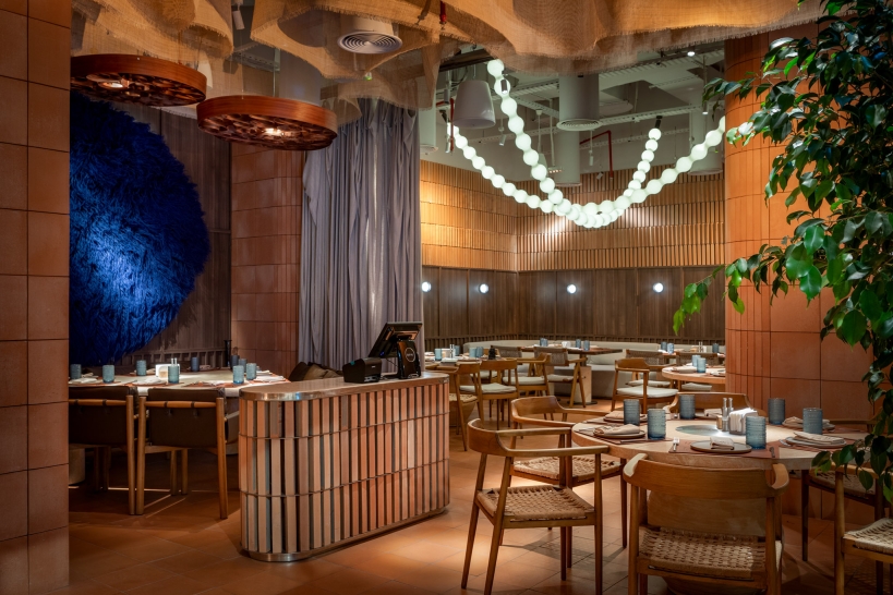 The restaurant perfectly blends tradition and modernity, which is reflected in all aspects of its interior: from lighting and design to the cuisine. Particular attention was given to high-quality lighting that highlights the authentic textural elements of the space and creates a biodynamic atmosphere. This ensures comfort and warmth at any time of day, from morning to evening.
