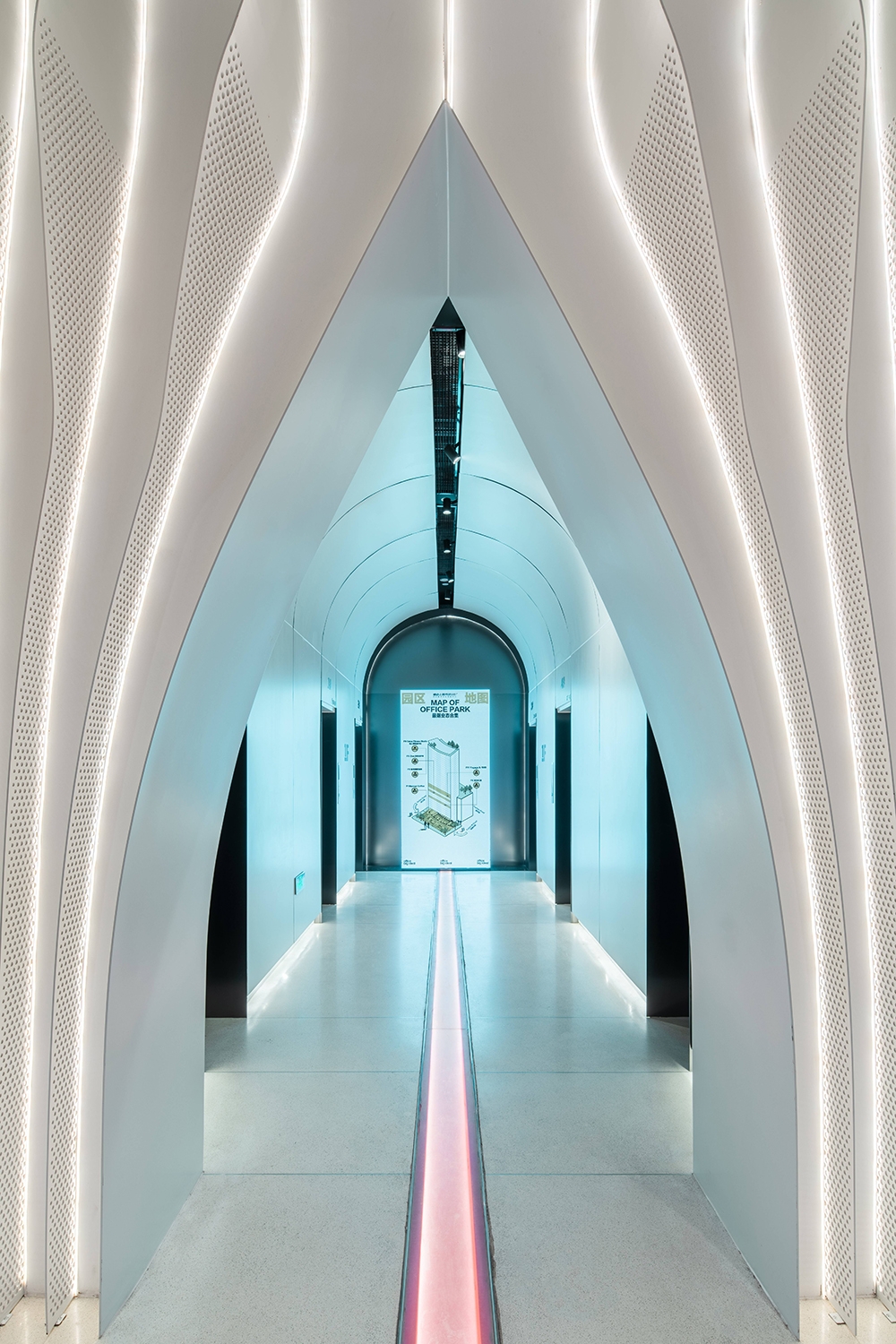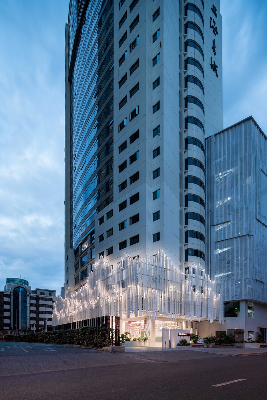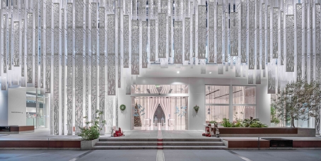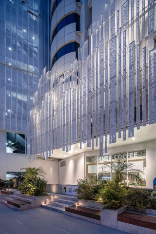The lighting design interprets the essence of the architecture. In this project, we adhered to the design concept of "creating the best spatial light atmosphere with the fewest fixtures." Specifically, we utilize the reflection and refraction of light within the perforated aluminum panels, creating an interaction between the light and the architectural facade's structural form. This interplay between light and shadow showcases the texture of light and shadow at the boundary of brightness and darkness. At night, the building's exterior transforms from a "steel rain" to a "rain of light," becoming a beautiful landmark in the city.