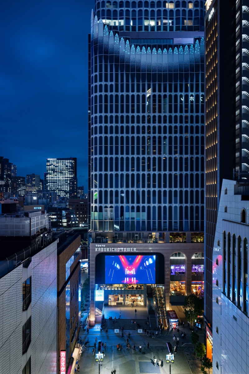 Entry DescriptionIn Kabukicho, Tokyo, a new skyscraper housing a hotel and entertainment facilities is built. The architect inherited the historical presence of water in the historical context of this place as a fountain and planned the exterior of the building with the image of the energy flowing at the roots of this city reaching up to the sky like a fountain. Also, in addition to the factor as a landmark with outstanding height that can be viewed from various directions, it was also required to express the feature of a facility devoted to entertainment with lighting design.