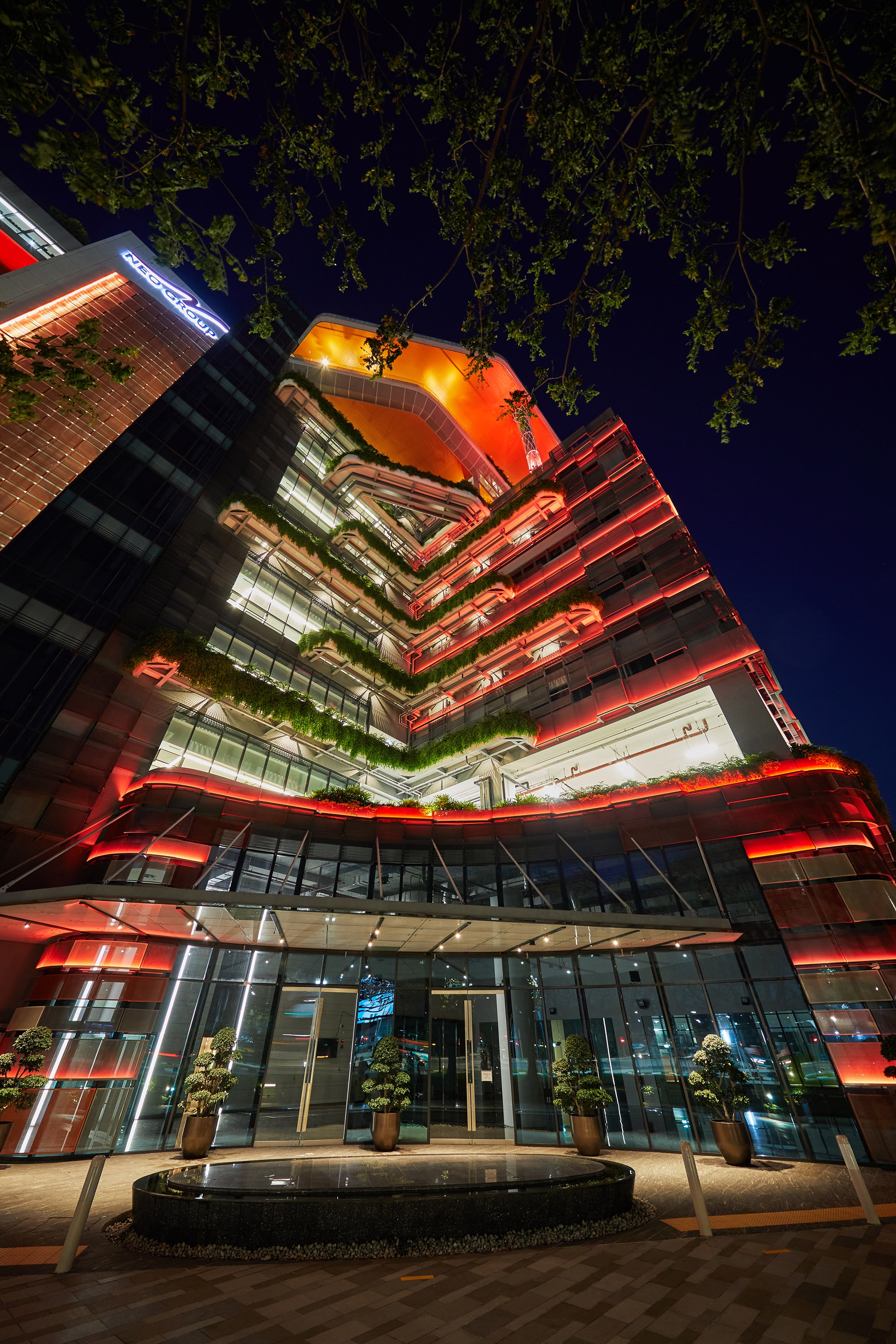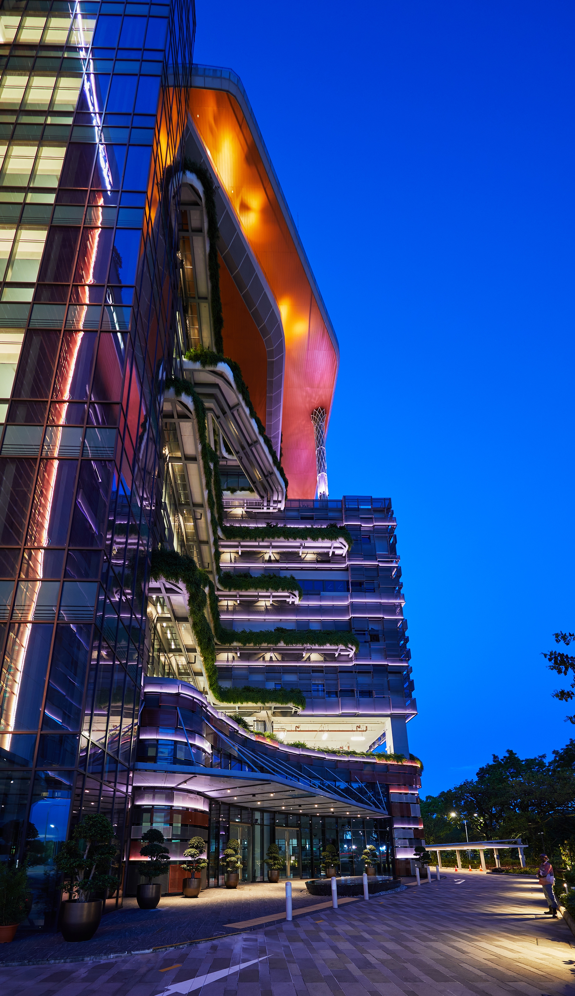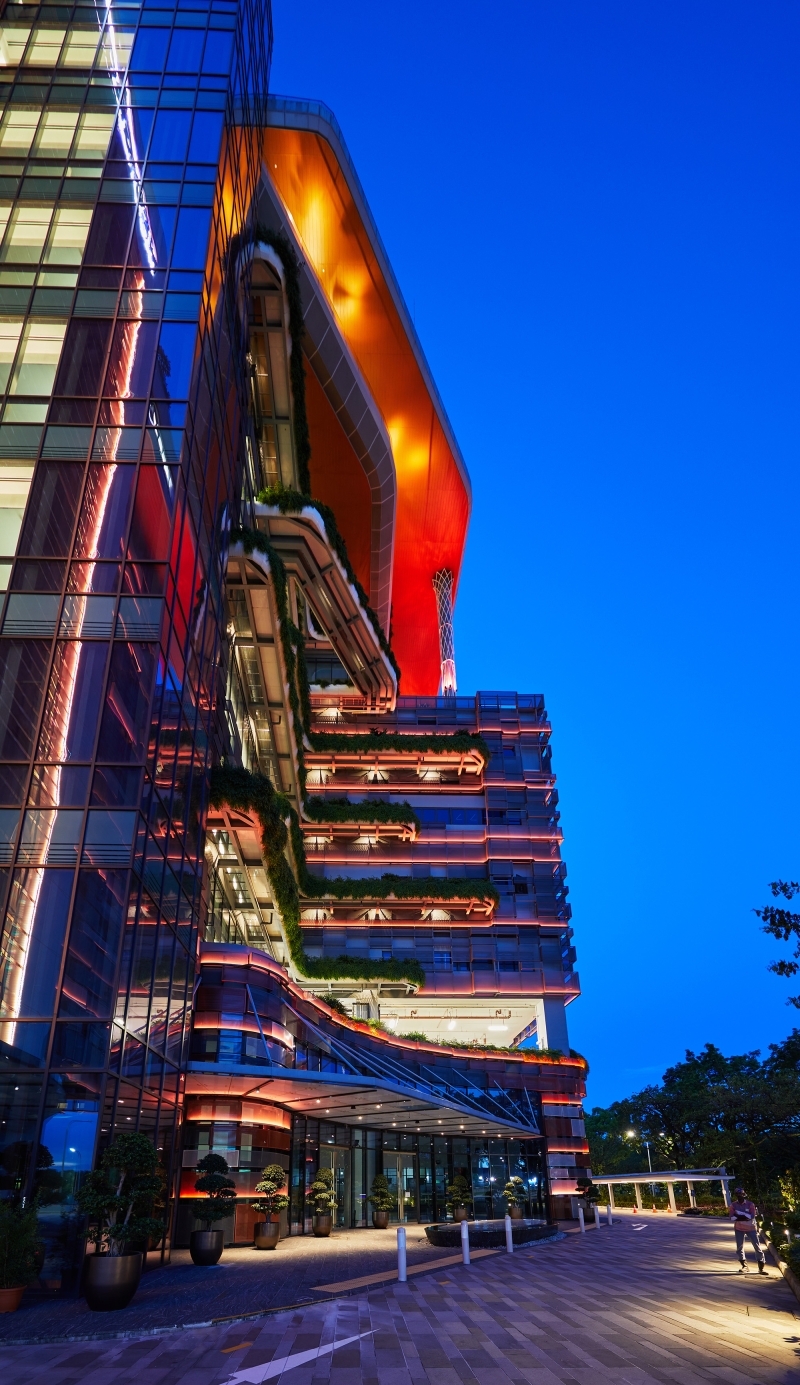 Sustainability ApproachWe have obtained the Singapore Greenmark Gold Plus, which includes overall savings of 35% from the baseline. As the surrounding is also quite dark, thus, the wattages and output used for the exterior are of low output as it can still be seen quite visibly in the environment. Scene controls were set, so the facade lighting turns off after 10pm.