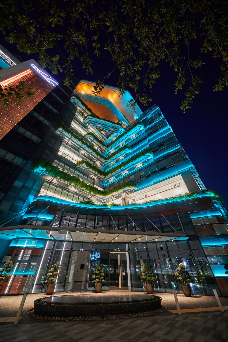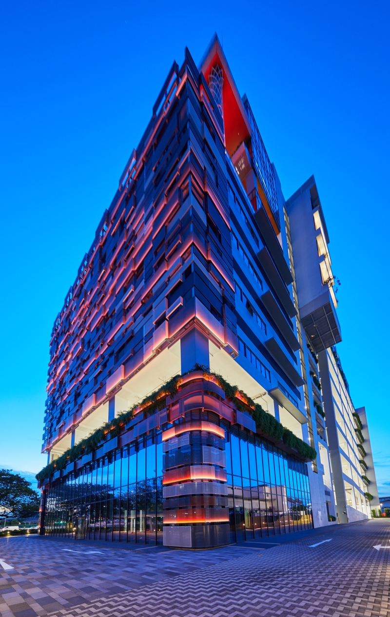 Entry DescriptionClient envisioned the new 10 storey flagship headquarters to be high tech and will consolidate it operations, central kitchens, offices, warehouse, logistics and storage facilities and other food and beverage operations in one location. Founder envisioned the facade lighting to be one that is playful and full of colours, to showcase the vibrant culture of the company.