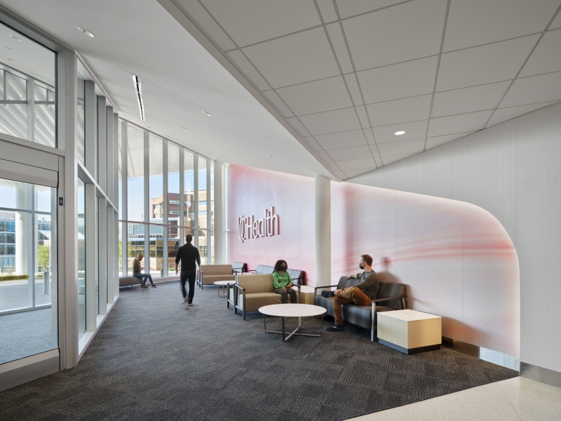 Sustainability ApproachThe sustainability approach for this nationally ranked healthcare system includes several key initiatives. While developing the lighting strategy, sustainability was at the forefront of the designers’ minds. LED luminaires tied to a central dimming control system were specified through the project to support energy efficiency and user comfort. Reducing carbon footprint, the design team developed a lighting kit-of-parts that helped reduce the quantity of fixture types and manufacturers on the project, supporting facilities and maintenance goals. Exceeding energy standards for buildings, the design was 40% better than ASHRAE 90.1-2013.