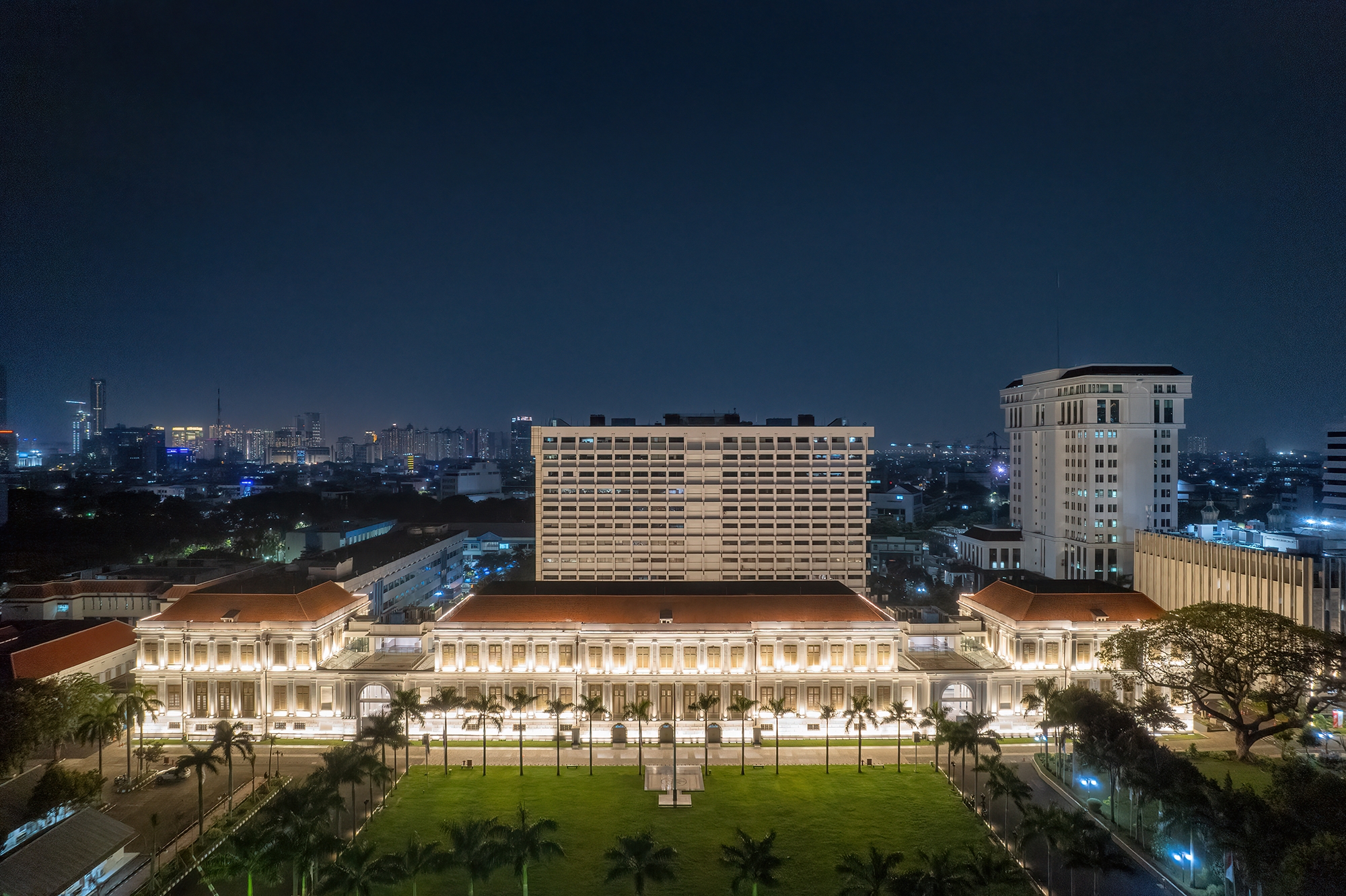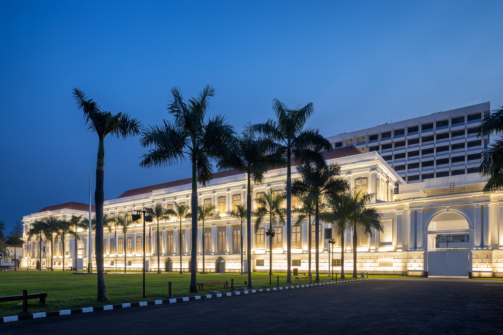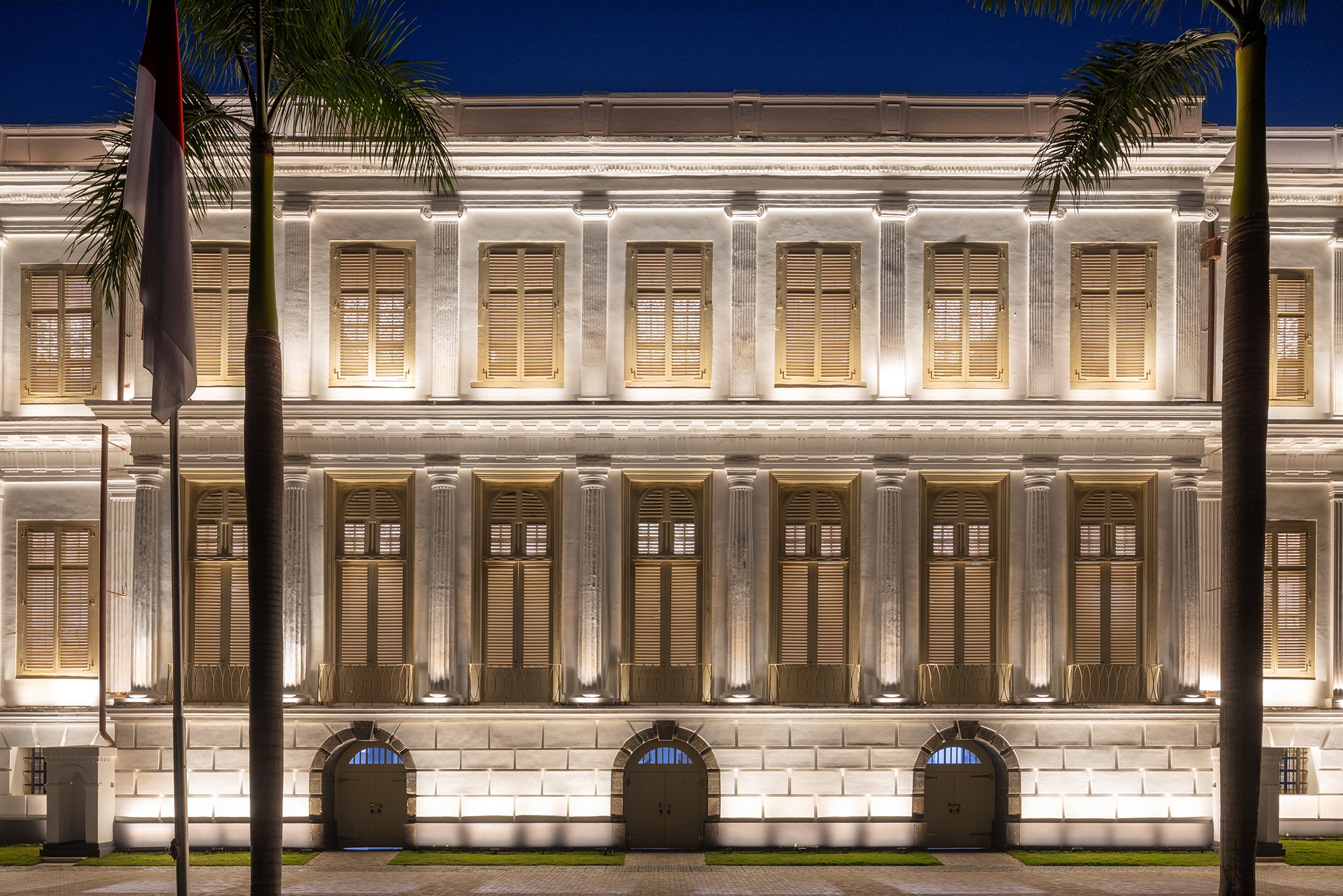 The architectural lighting concept itself aims to highlight the architectural figure of the building itself. 3 architectural lighting concepts are put into practice here.