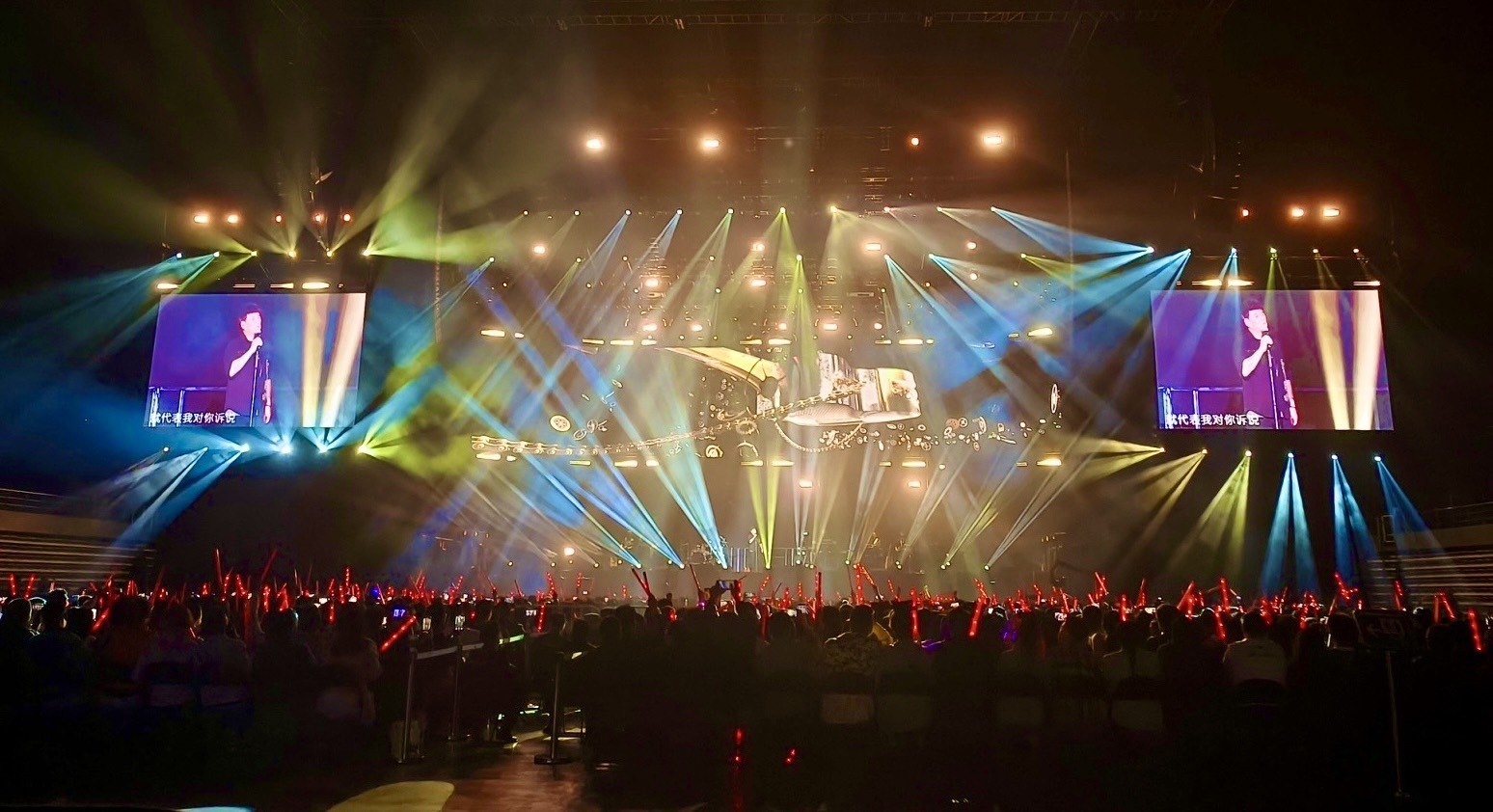 Entry DescriptionThe lighting design of this concert revolves around these two themes. In the first half, large-scale projection screens are used to create a martial arts world. Precision is key as the lighting must spotlight the singers, drummers, and dancers, enhancing their presence without overshadowing the immersive projected imagery. The light beams dance with finesse, morphing into poignant symbols like the red thread of love or the glint of swords from martial arts epics. Transitioning with band solos, the projecting screens transform into large LED walls in the second half. In the second half, where the lighting design escalates from nuanced to bold, infusing the stage with vibrant colors and pulsating dynamics. From martial arts landscapes to gritty parking lots, celestial voyages to intimate slices of everyday life inspired by Wakin’s new album "The Younger Me."