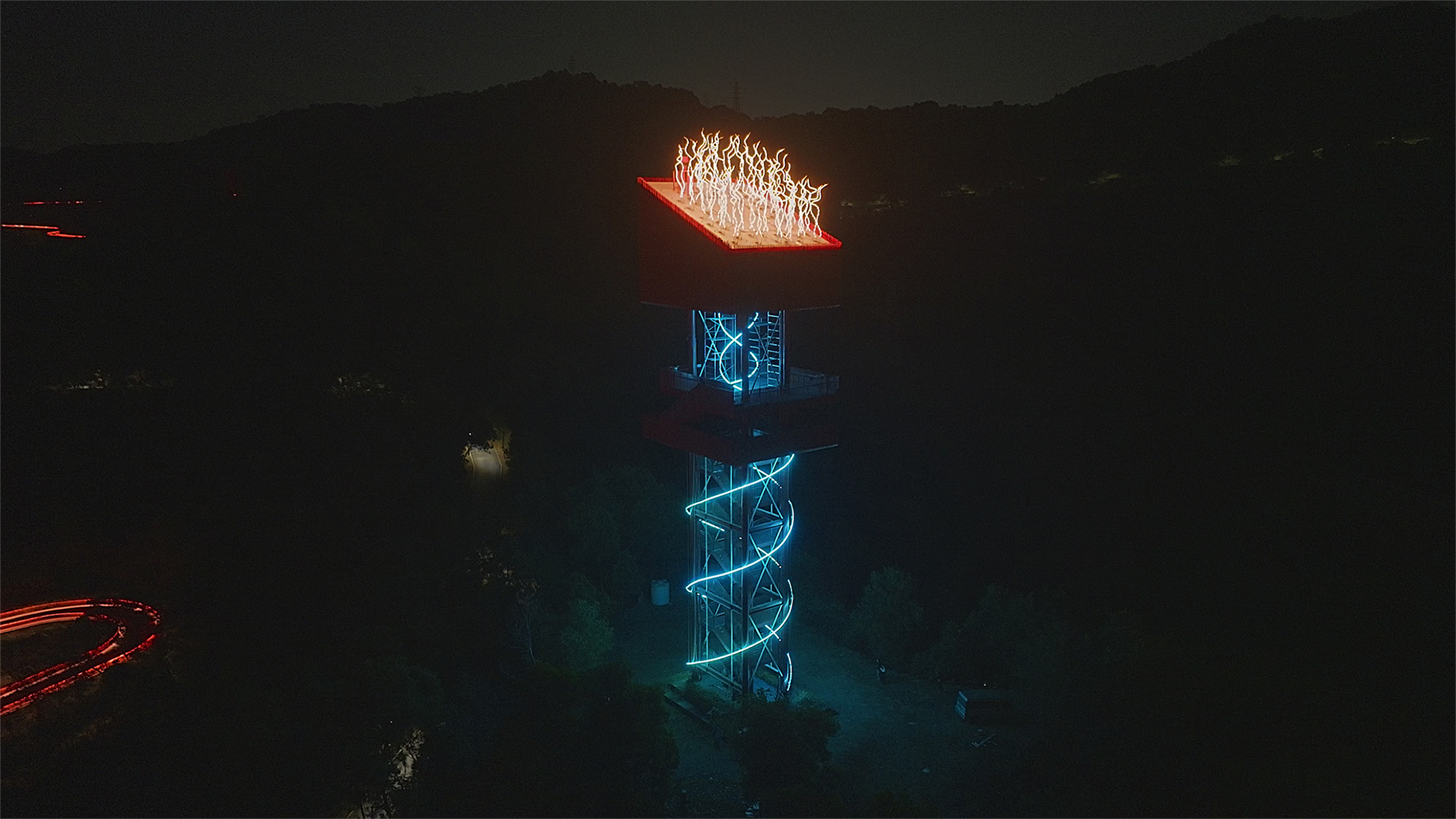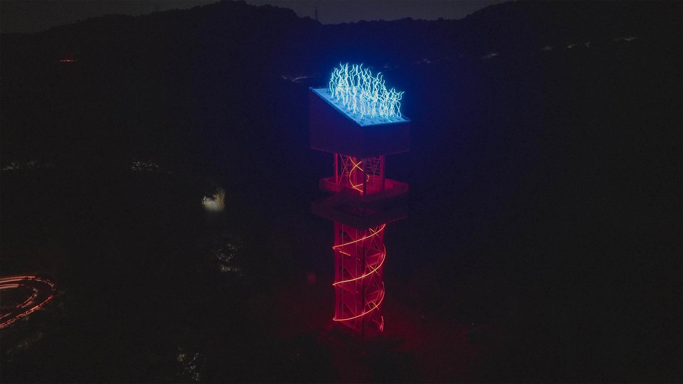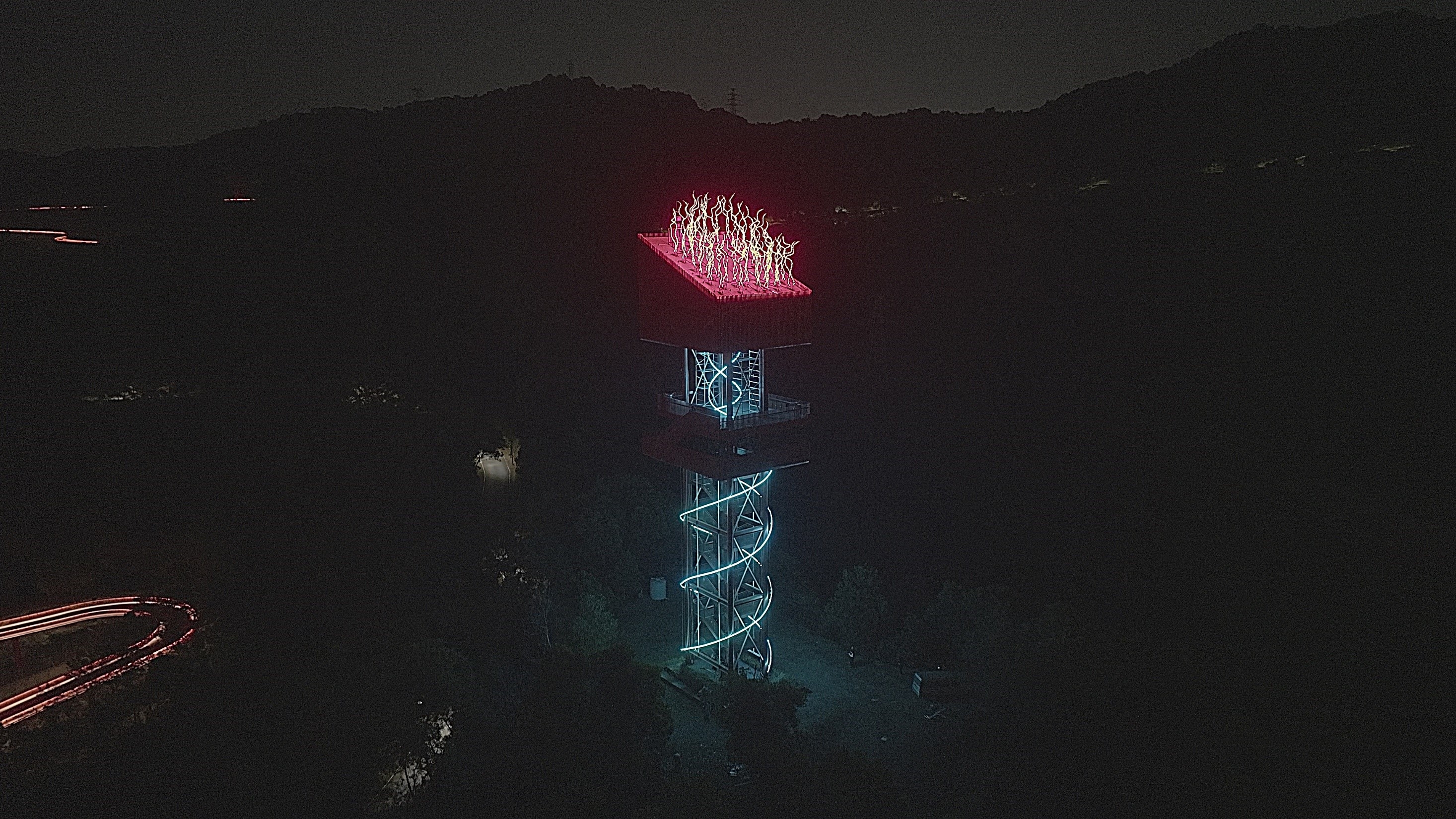 This installation uses the Panorama Tower in Hongqiao Park as its medium, with a lightweight extruded aluminum structure supporting the ascending light of biological DNA. The symbiotic scientific logic re-energizes the Panorama Tower, creating a unique nighttime light art expression in Hongqiao Park. This installation interacts with other art installations, forming a complete scientific loop expressed through the overall artistic installations in Hongqiao Park.