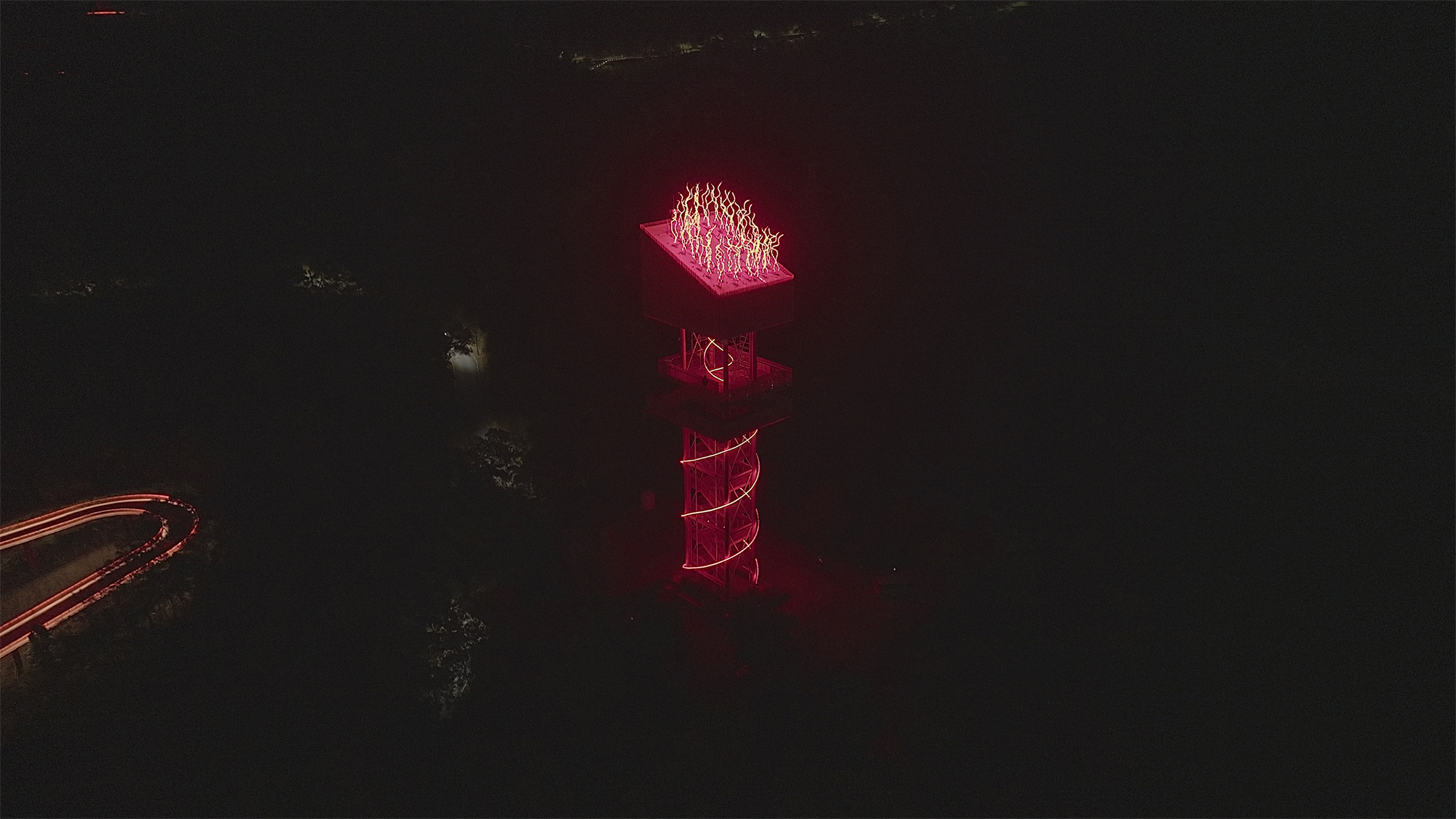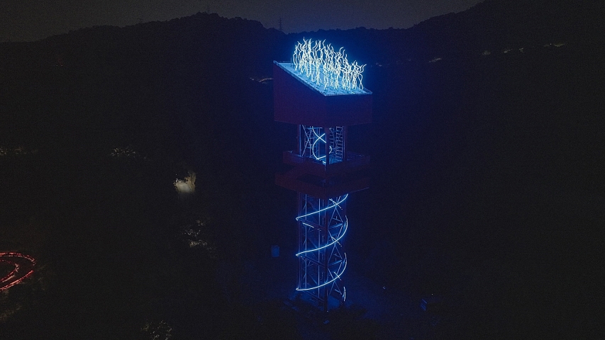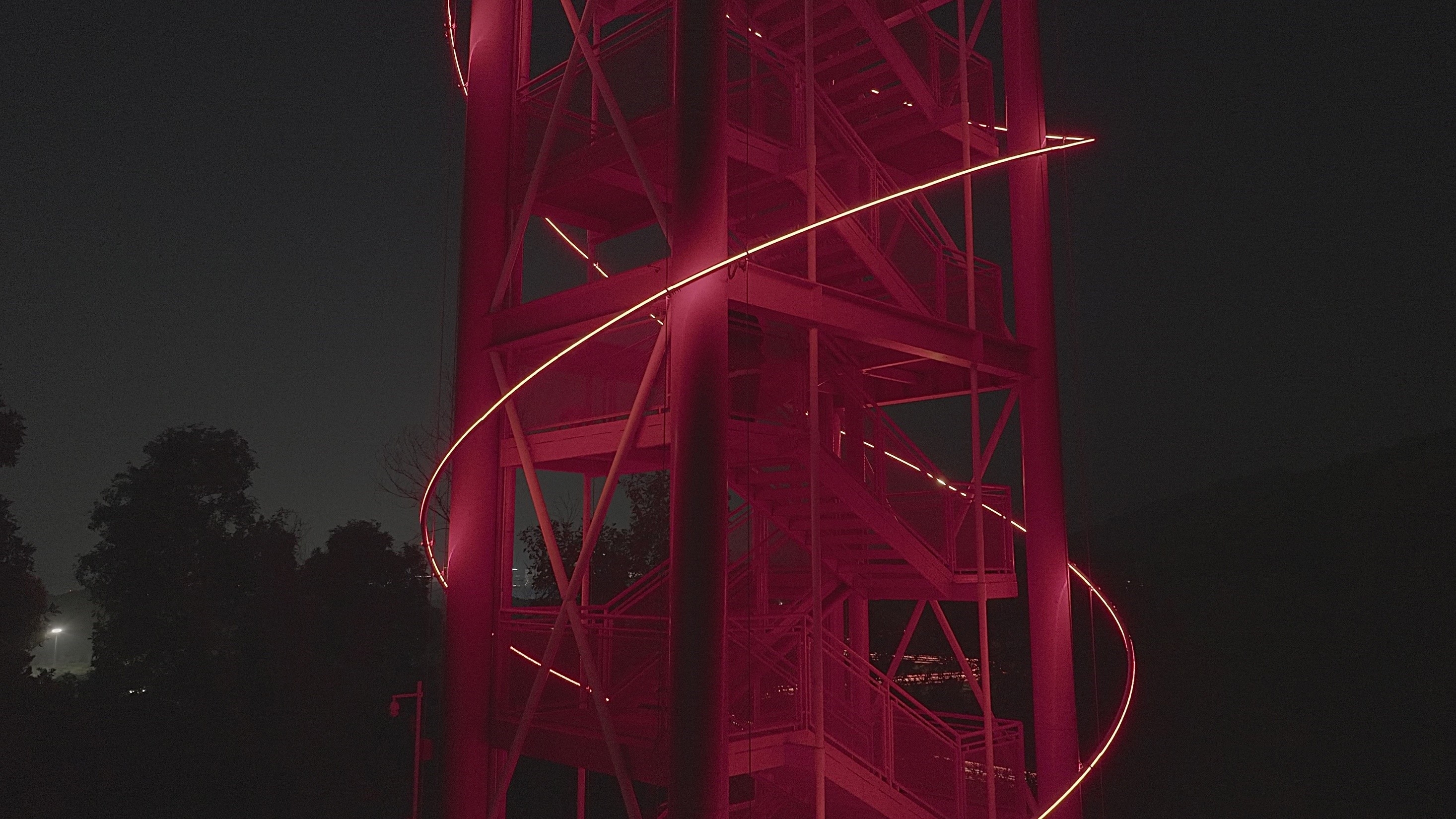 This installation uses the Panorama Tower in Hongqiao Park as its medium, with a lightweight extruded aluminum structure supporting the ascending light of biological DNA. The symbiotic scientific logic re-energizes the Panorama Tower, creating a unique nighttime light art expression in Hongqiao Park. This installation interacts with other art installations, forming a complete scientific loop expressed through the overall artistic installations in Hongqiao Park.