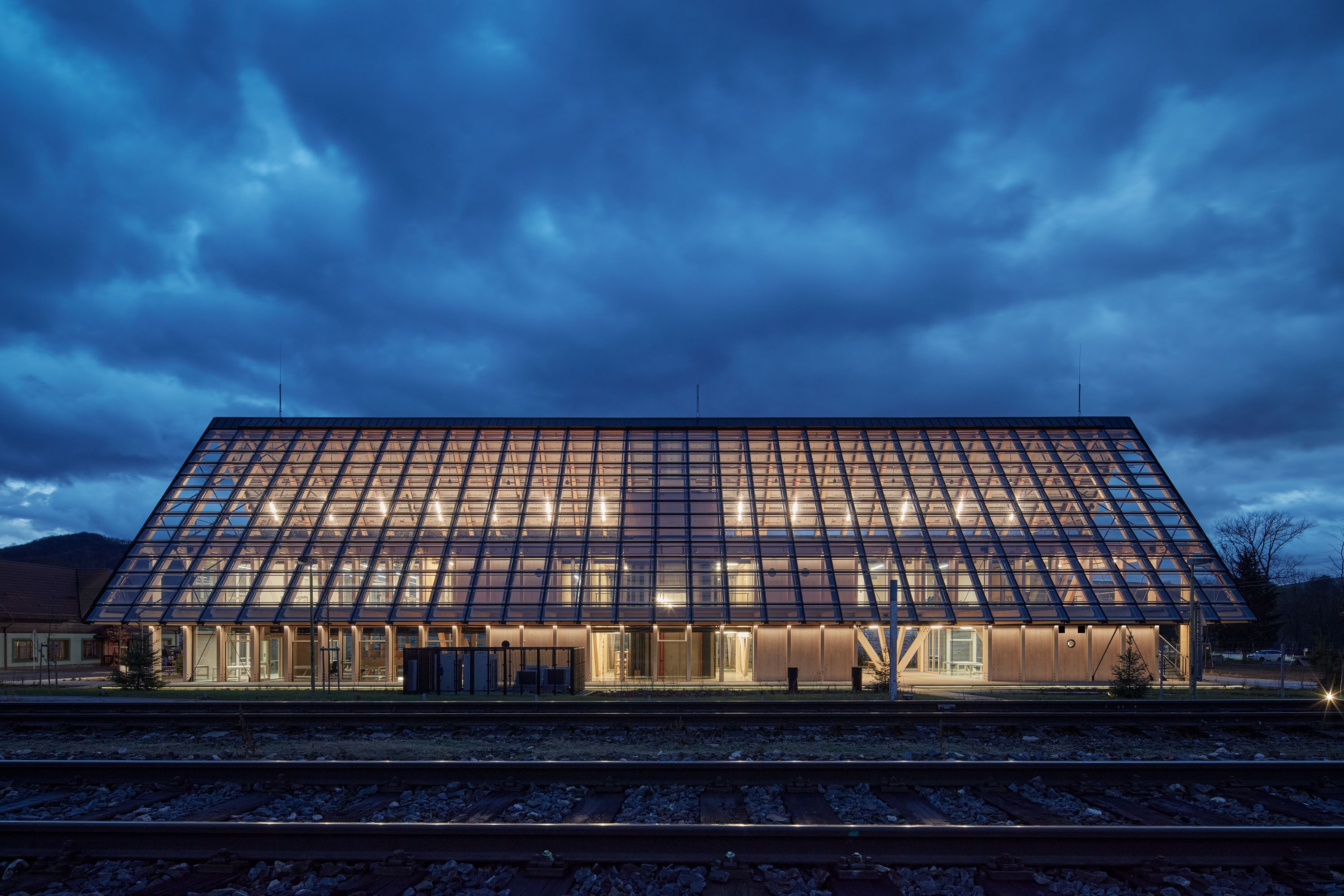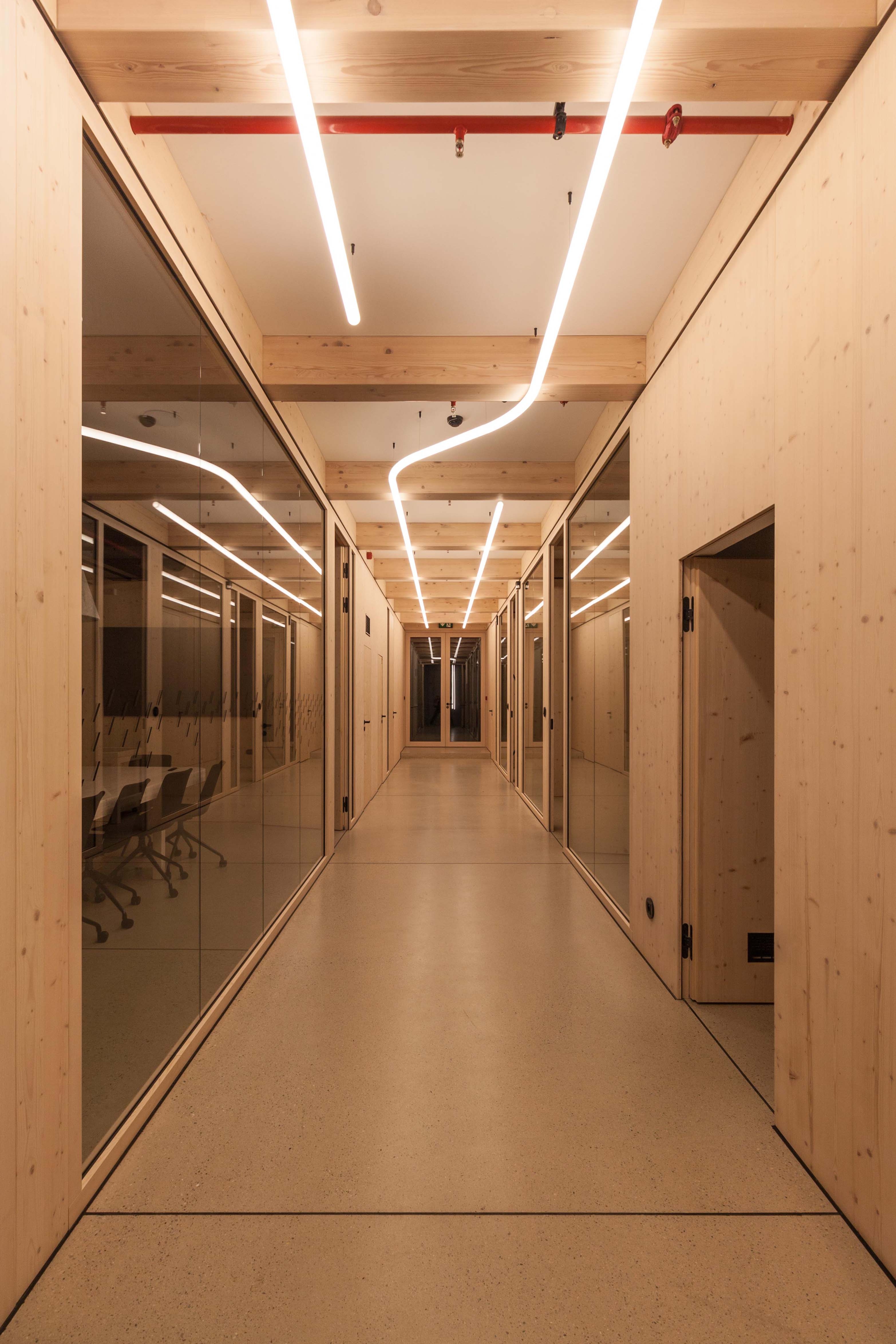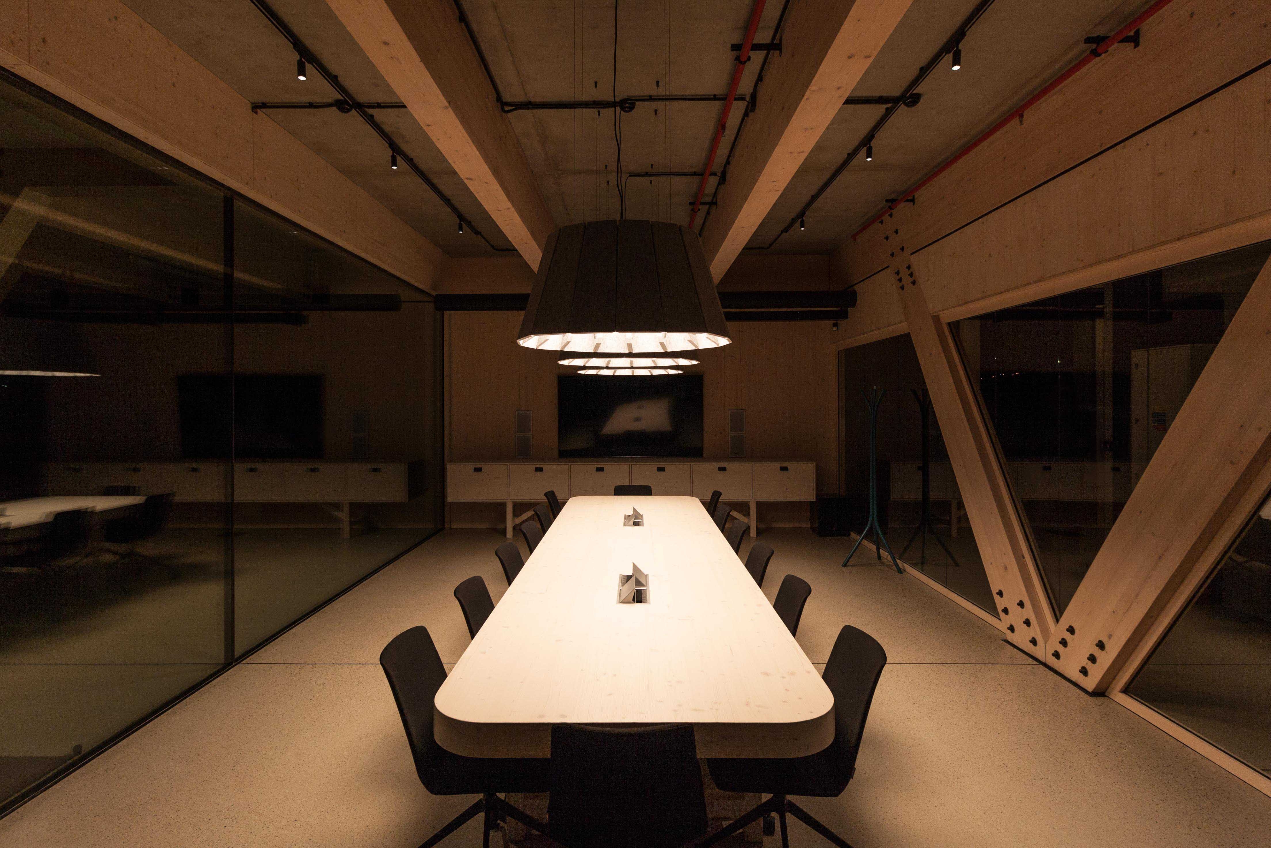 The project is structurally and technically exceptional, at the same time also modest. The lighting design adapts to these facts. All constructions and technologies are visible, and the lighting works in the same way. The lighting concept fits into the technical character of the building. Both in the interior and the exterior, the aim is to ensure that the luminaire bodies do not appear aggressive and fit sensitively into the structure of the building. However, hanging acoustic chandeliers in the meeting rooms purposefully act as dominant elements of the space.