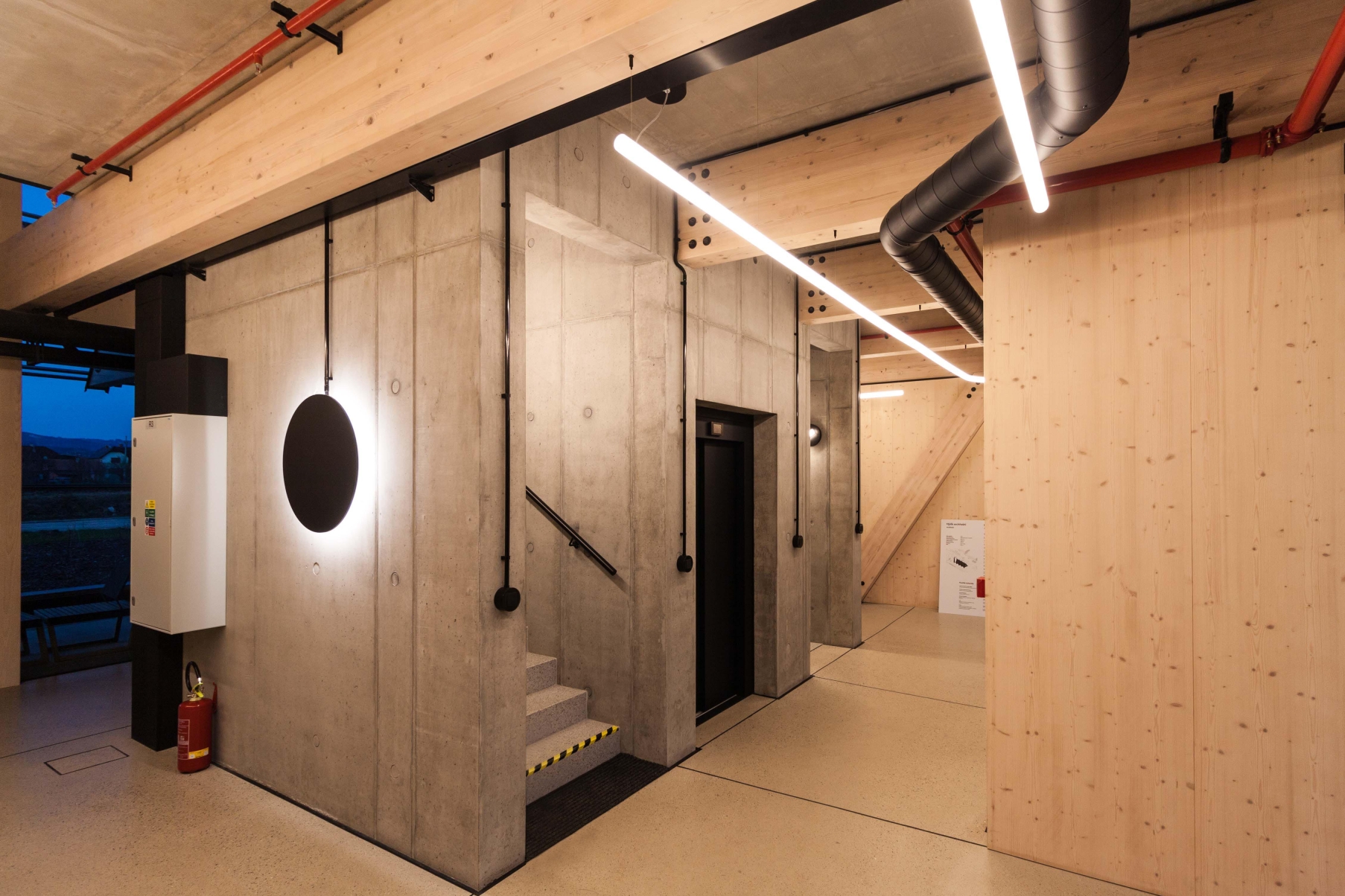Thanks to the large amount of glass surfaces, a big amount of daylight passes into the building. The artificial light complements it. We also focused on the functionality of the entire design. Luminaires do not glare and evenly lit a desired space.