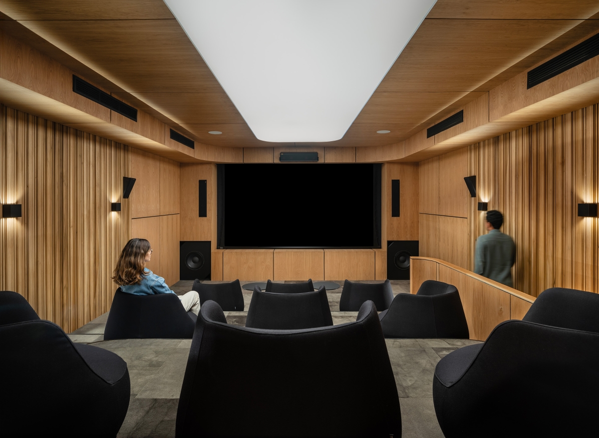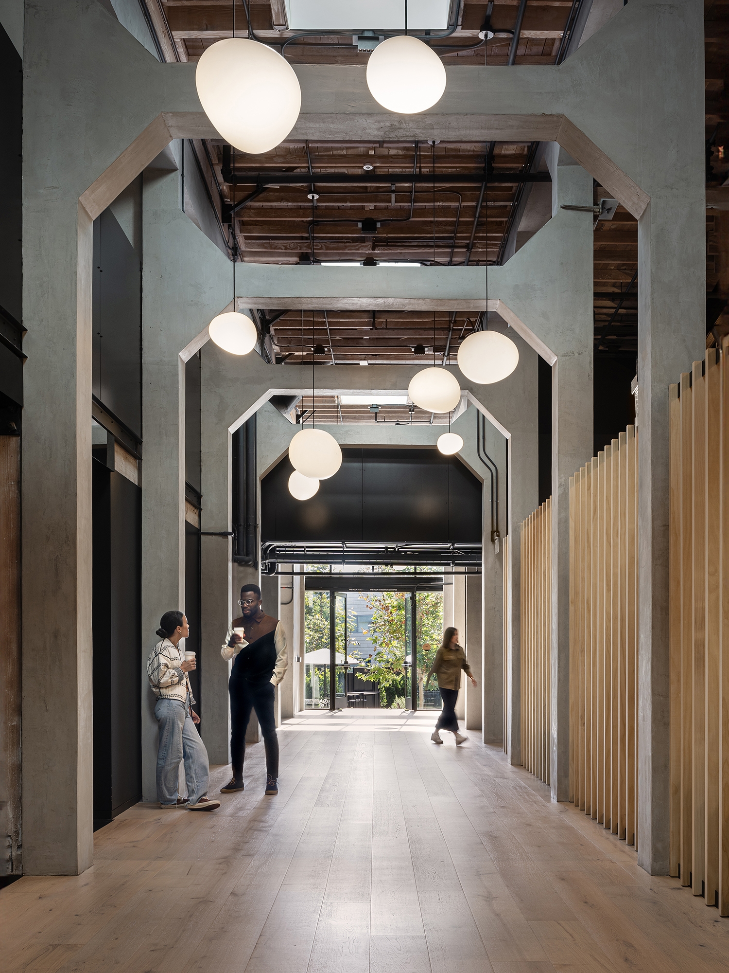 Inspired by LA culture & architectural scene, this modern workspace uses custom lighting to embody the locale & create a dynamic environment.