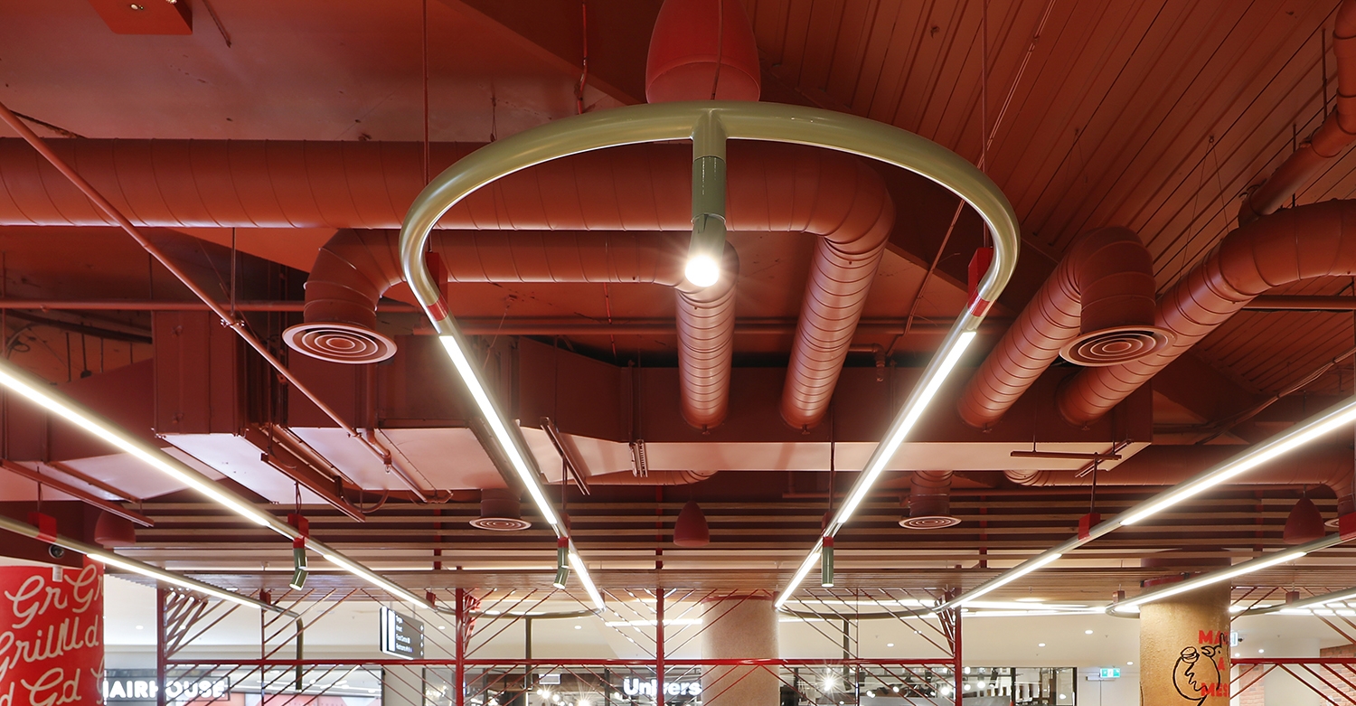 Designed to illuminate a vast space while enhancing the visual and architectural appeal, this lighting system was conceived to set a benchmark for large-scale overhead illumination. Meander weaves throughout the space and is not just a lighting hallmark, but a showcase feature.