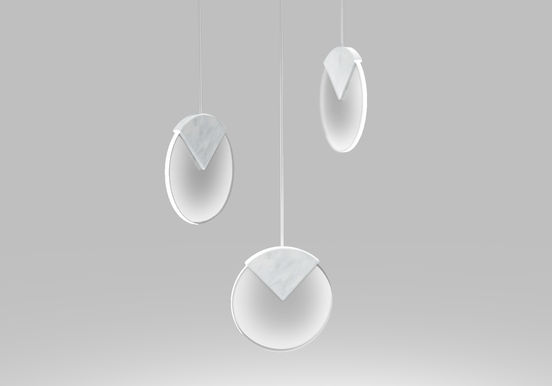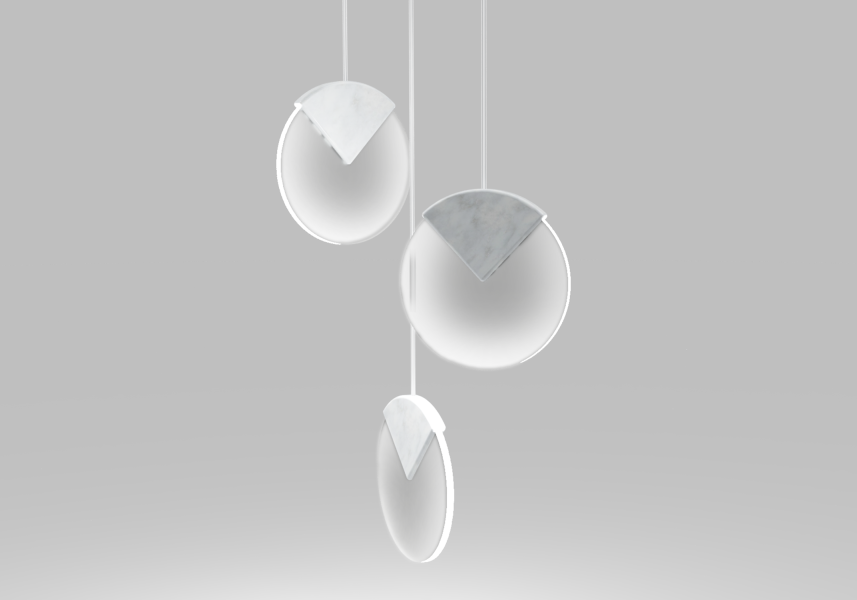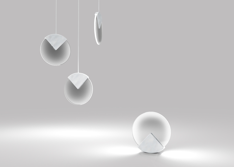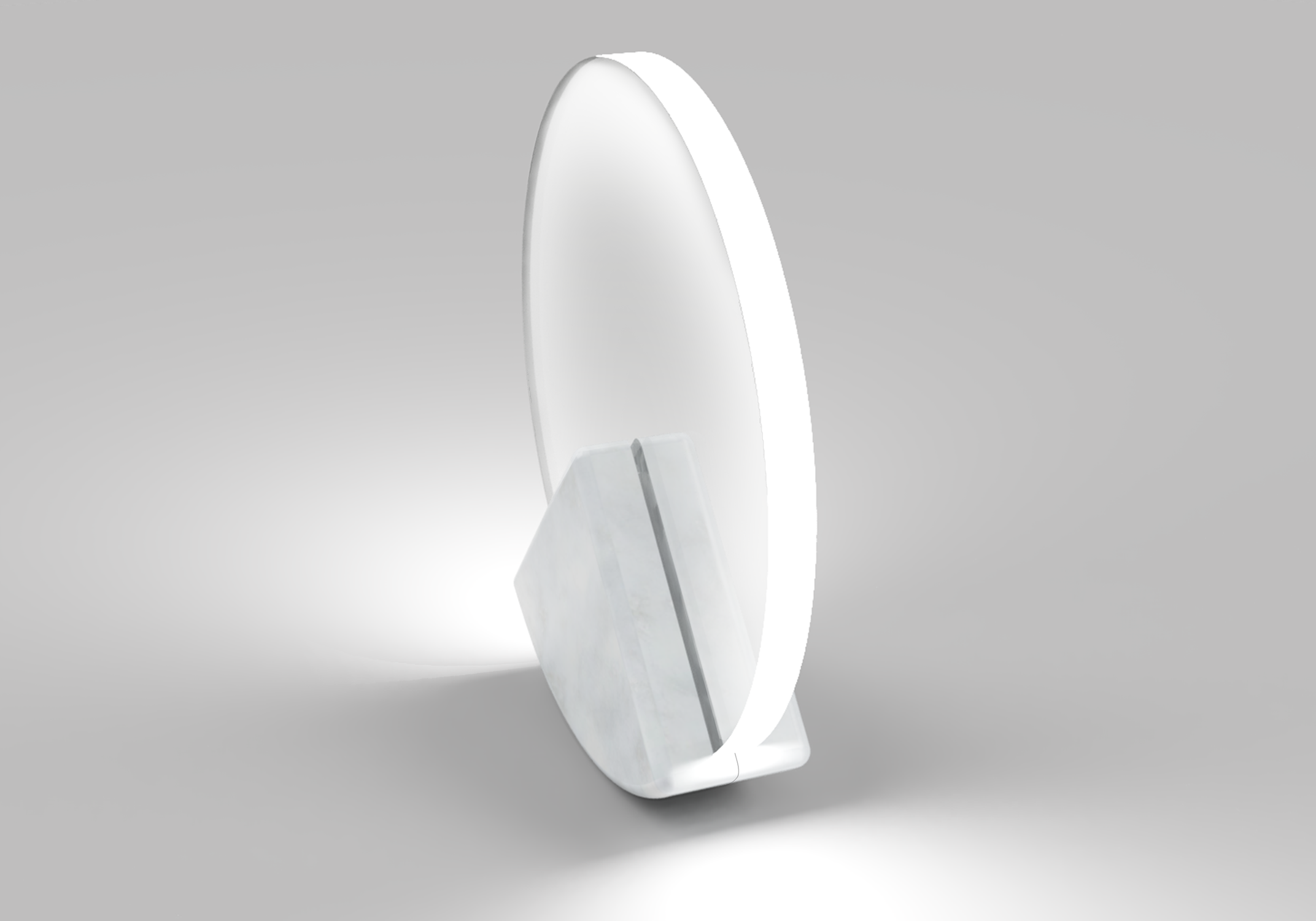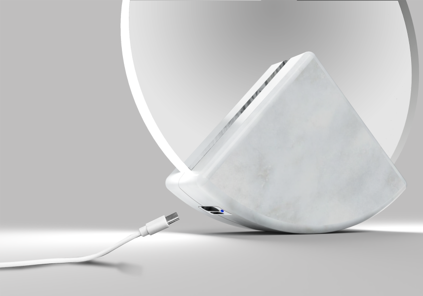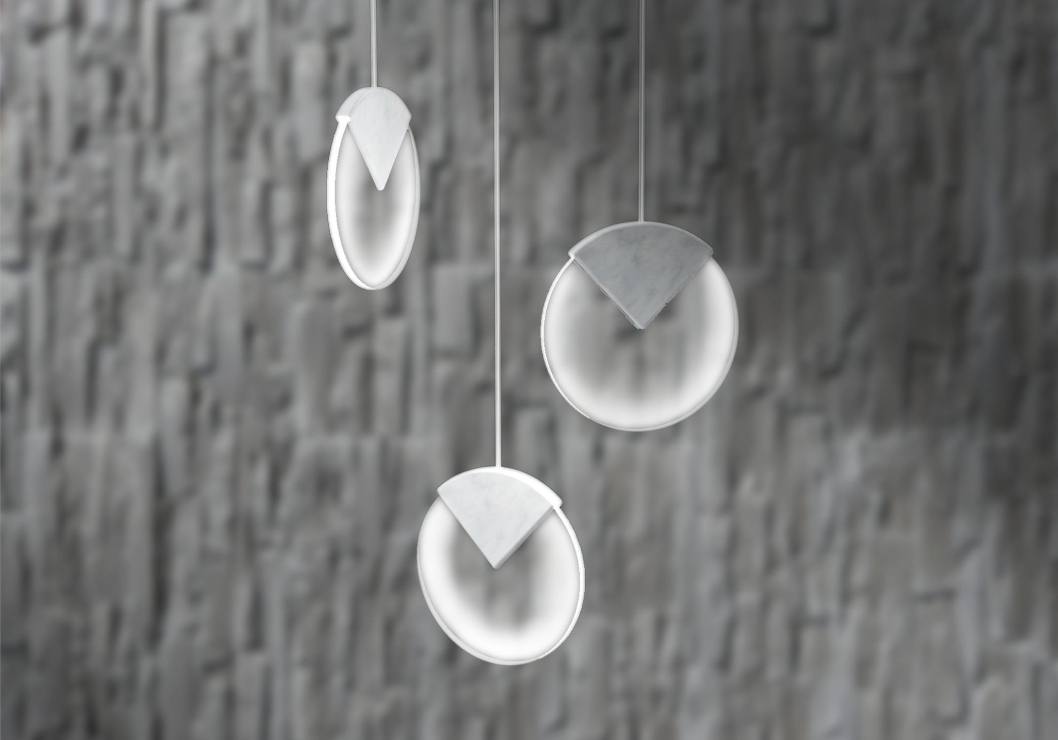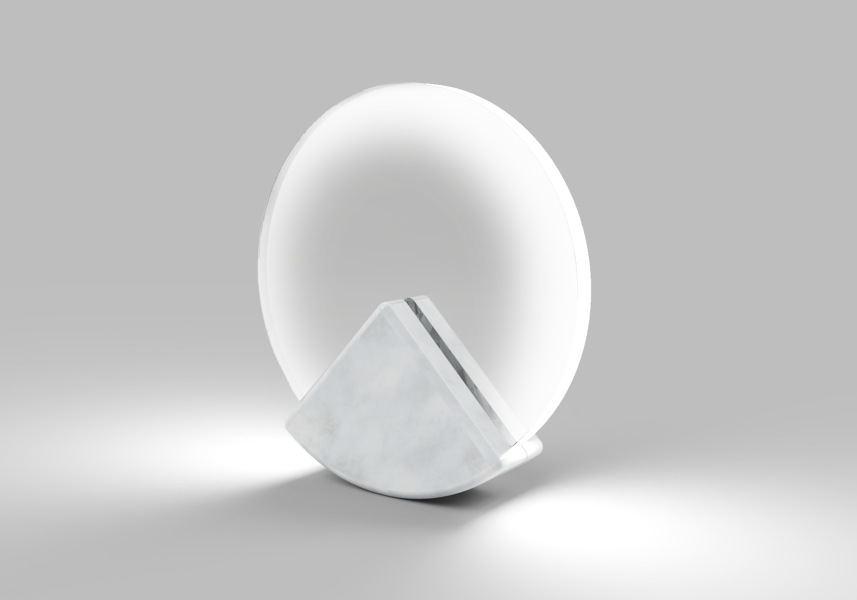 This series of lights is a pendant light and a desk light inspired by the hazy moon. The mysterious and gentle light of the moon always fascinates and heals us. This light is expressed by sandblasting glass. By reducing the sandblasting as we move toward the center, we have created a beautiful gradation.The base is made of resin with marine minerals to express the hard image of the moon. LED tape inside the base illuminates the edge of the glass. The desk lamp is USB rechargeable and switches on and off with a contact sensor. The simple, modern shape of the desk lamp can be placed in any room to give the room a sophisticated, museum-like atmosphere.