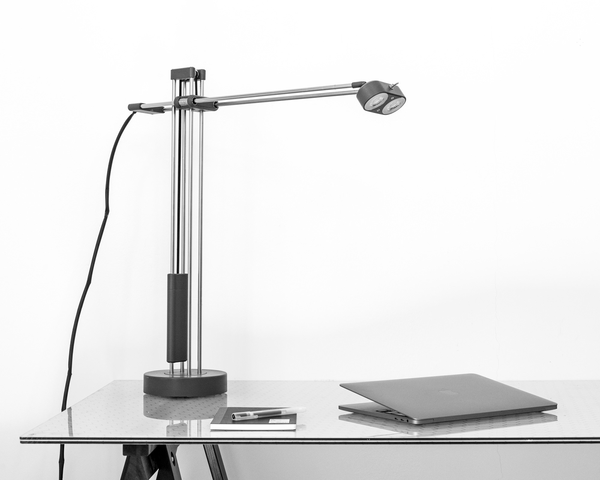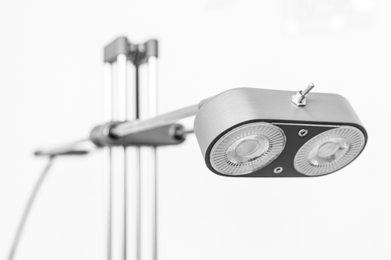 The long lighting arm is always able to cover a large area of the table.