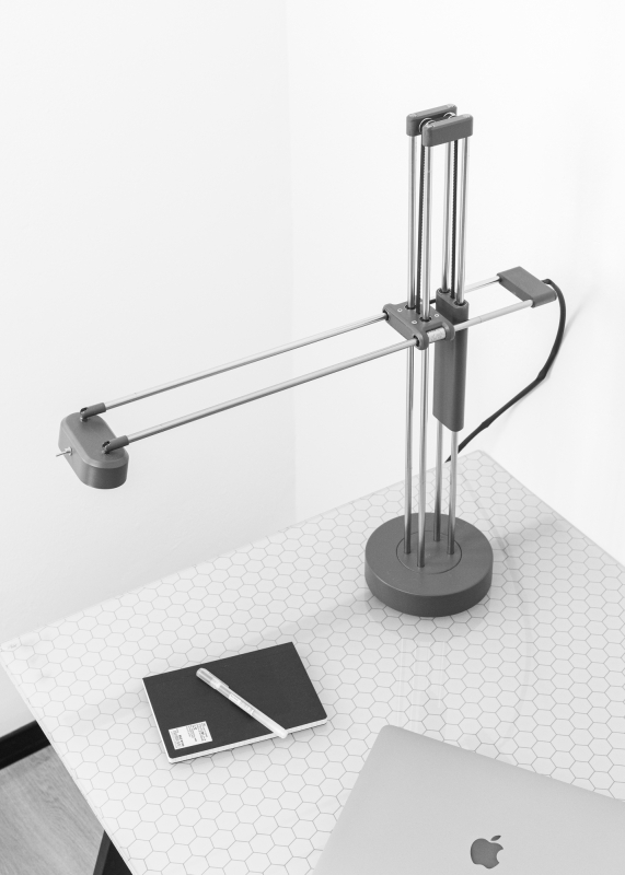 All you have to do is choose a point in the work space where the light beam fits, and with the right or left hand position the head, and NEKO will hold it steady.