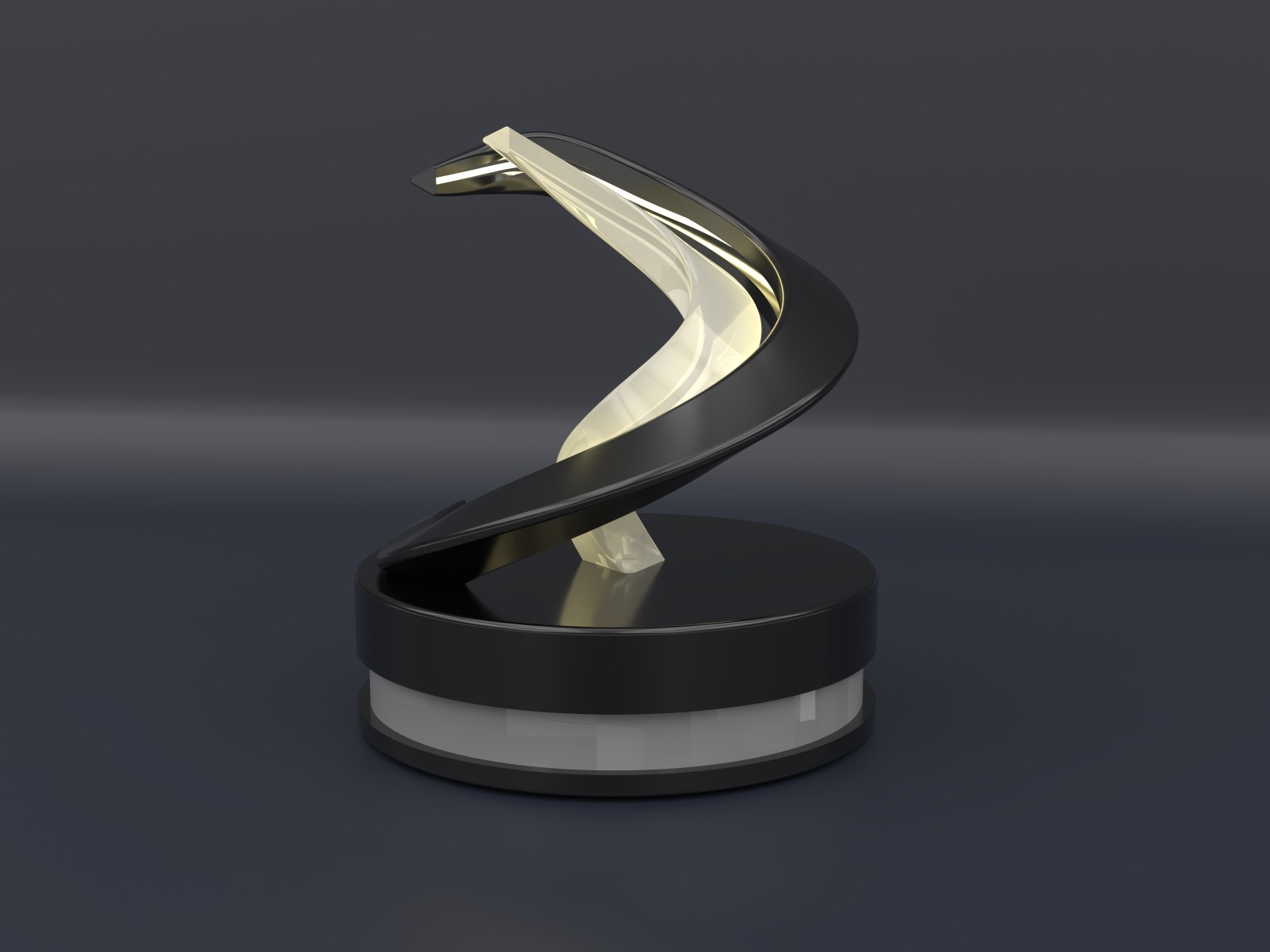 Entry DescriptionMevak - the art of appreciating all those little things in life- is a table lamp whose structure features three assembled cylinders and two organic shapes inspired by the green tree python, using black, white, and transparent colors. The functionality of Mevak consists of a translucent organic shape that rotates at the center of the LEDs, generating a movement effect with the lights, alluding to the product's name.