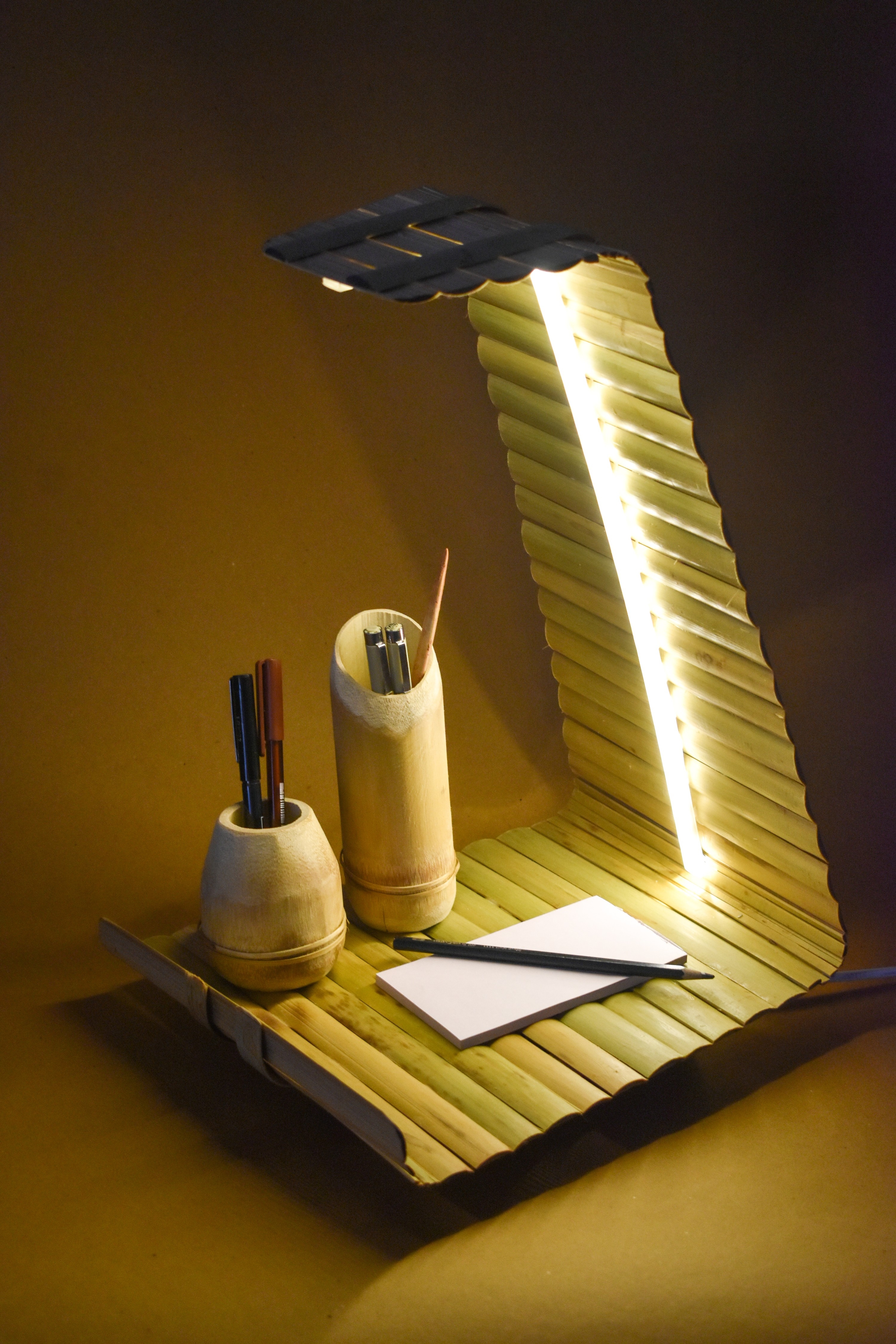 Sustainability ApproachBamboo, The "Green gold" of this generation, truly has the potential to turn around the way we live our daily lifestyle. The growth cycle of bamboo is very less compared to other trees used for furniture purposes, which already gives it a win over other materials as a primary choice. While working with bamboo as a material, I was fascinated not just by the strength but by the possibilities and the versatility of the material. With mere bending and joining techniques, it allowed me to work on the designs with almost no glue used in the process. Which was an add on to present this collection as sustainable, eco friendly and strong. With good finish and care, the collection has the capability of lasting for years, and even if one wishes to discard it, there is almost zero harm to the environment, completing the circularity of the material, recycling and its post life carbon footprints.