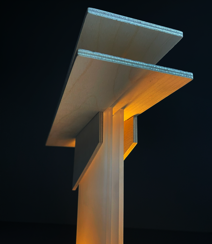 Sustainability ApproachThe sustainability of this project is rooted in its use of renewable materials, like birch wood, which is both durable and eco-friendly. Inspired by Frank Lloyd Wright’s design principles, this lamp combines art, sustainability, and functionality with its clean lines and renewable birch wood construction. The flat-pack, tool-free design reduces packaging waste and transportation impact while offering easy assembly. Its modular structure allows for quick, user-friendly building and disassembly, ensuring flexibility and ease of use. With its timeless aesthetic and eco-conscious materials, this lamp provides a versatile and sustainable lighting solution for any environment, staying true to the balance of art and design.