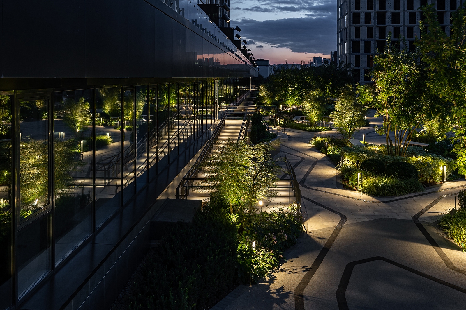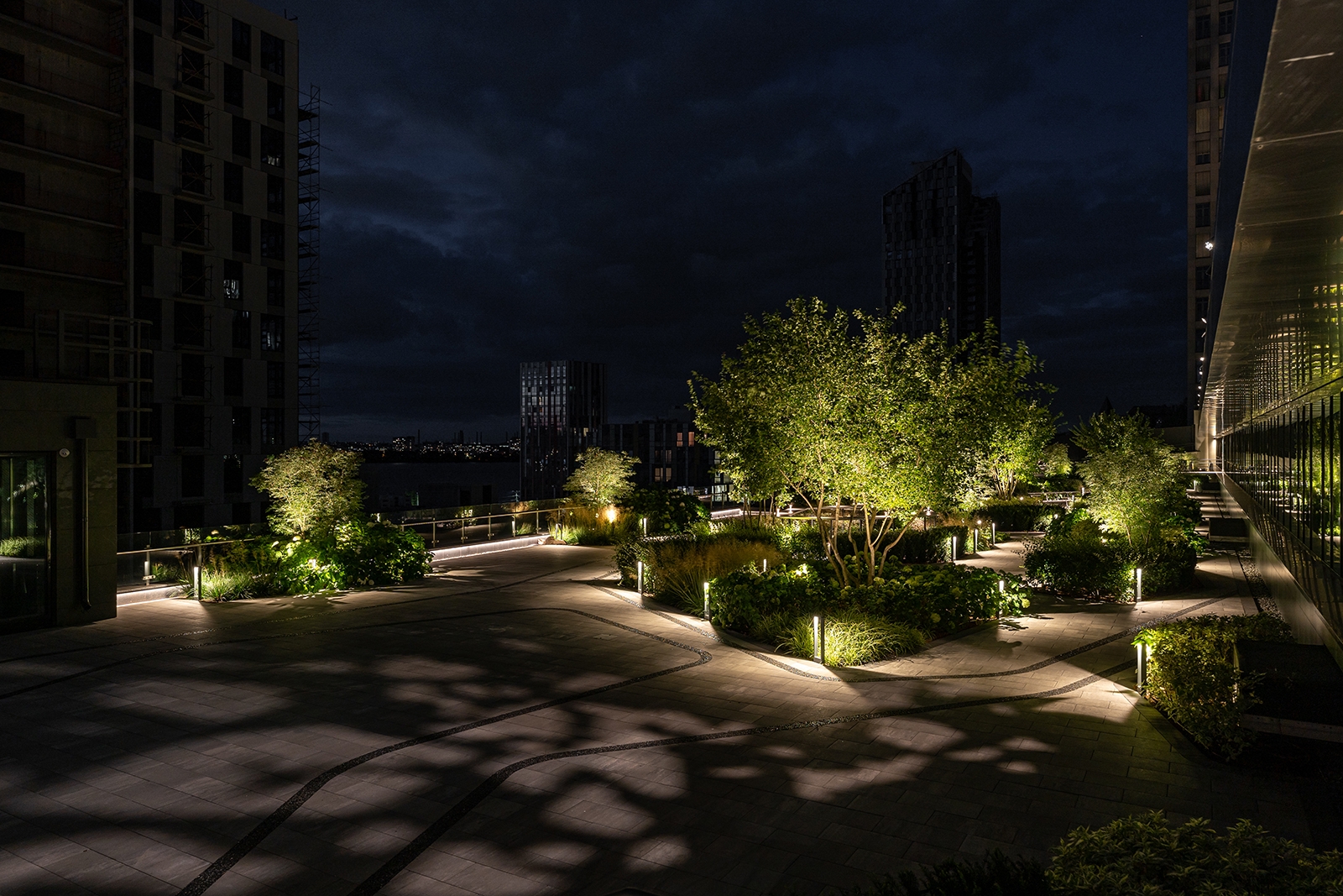 To achieve this, we designed custom lighting fixtures under our own brand to create the effect of natural shadows, similar to those cast by trees. Each project is approached individually: we carefully design and create unique fixtures tailored to specific requirements. We adjust the height, manufacture special shadow filters, add light sources, and craft appropriate housings. Importantly, our production is based in Ukraine, and we even manufactured diodes in Ukraine, supporting local manufacturers who continued to work even during the war.
