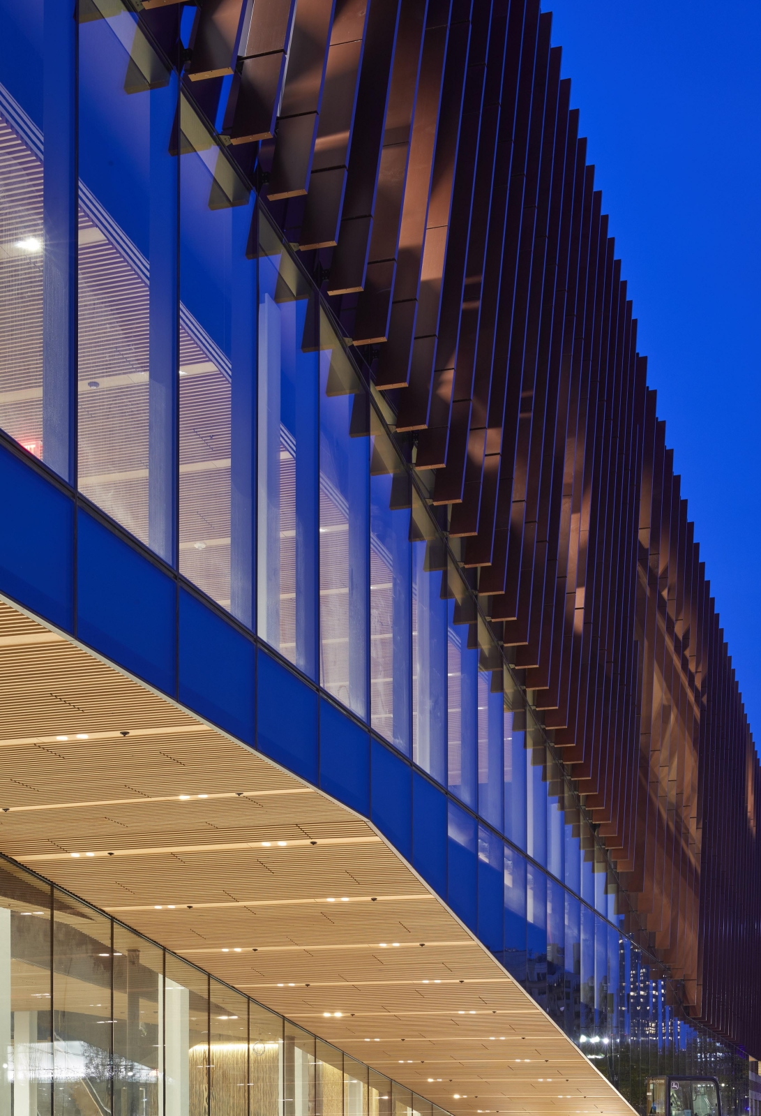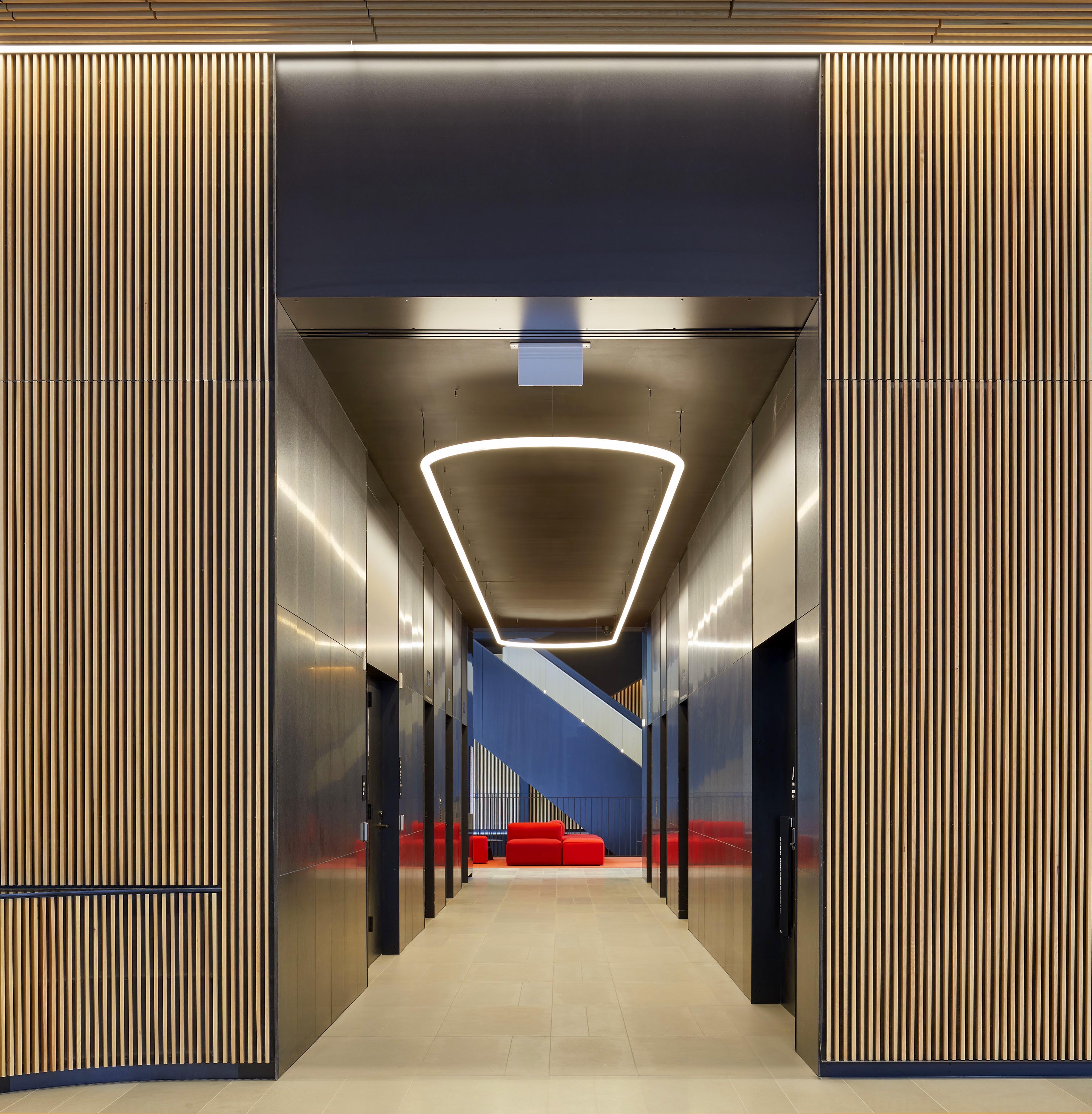 Entry DescriptionThis iconic landmark within the Boston skyline stands as a beacon of environmental stewardship and sustainable lighting design. Expansive glass facades and soaring atrium space allow daylight to penetrate deep into the floor plates. A dynamic daylight responsive control strategy was carefully developed to maximize energy conservation and achieve a LEED Platinum certification.? To balance the daylight, perimeter cove lights illuminate vertical surfaces throughout the building.? After sunset, the warm wash of light provides a lantern-like ambiance. The balance and subtle transition of the lighting over the course of the day create an environment rich in collaboration, interconnectivity, and innovation.