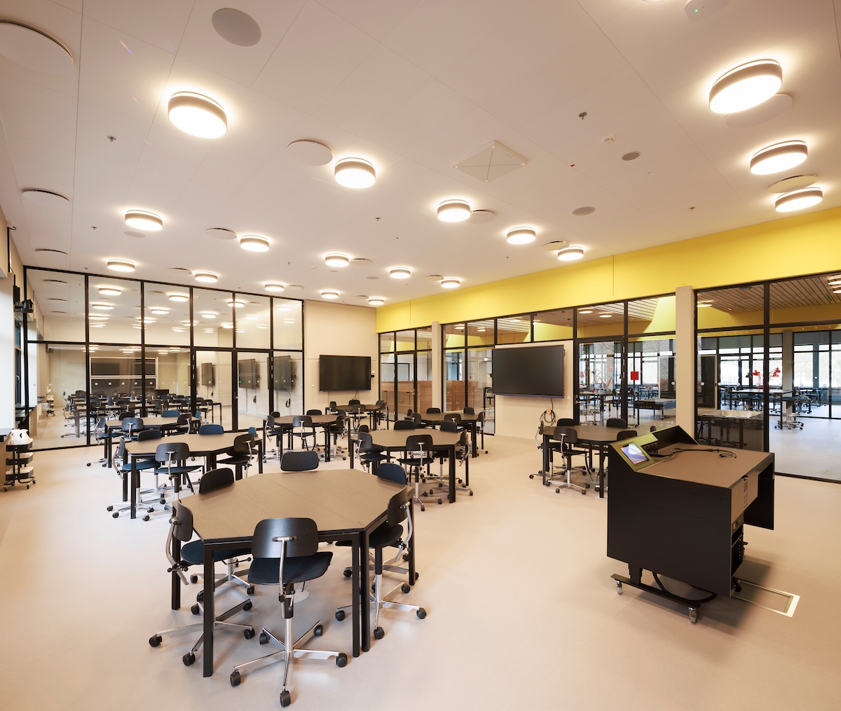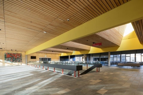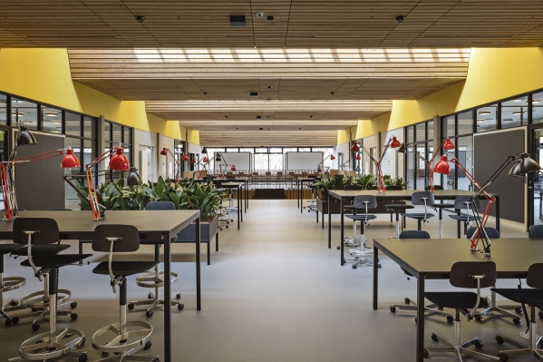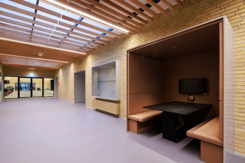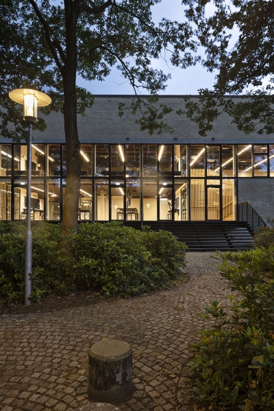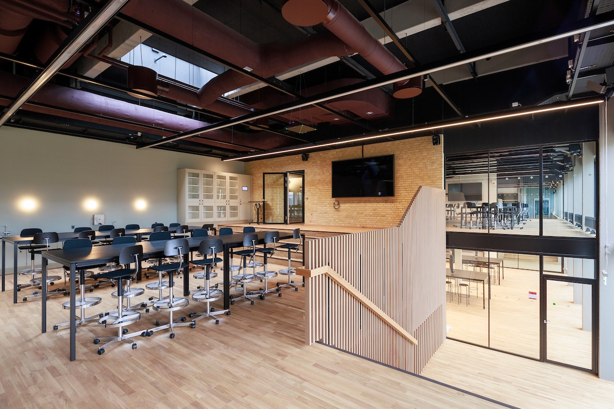 A redesigned layout offers spaces for both formal and informal learning, enhanced by masterfully integrated daylight and artificial lighting. New ceiling openings bring light to the building's core. Glass facades and interior divisions that provide new views and access, are supplemented sensitively by artificial lighting, that optimizes conditions for time of day and varied study situations.